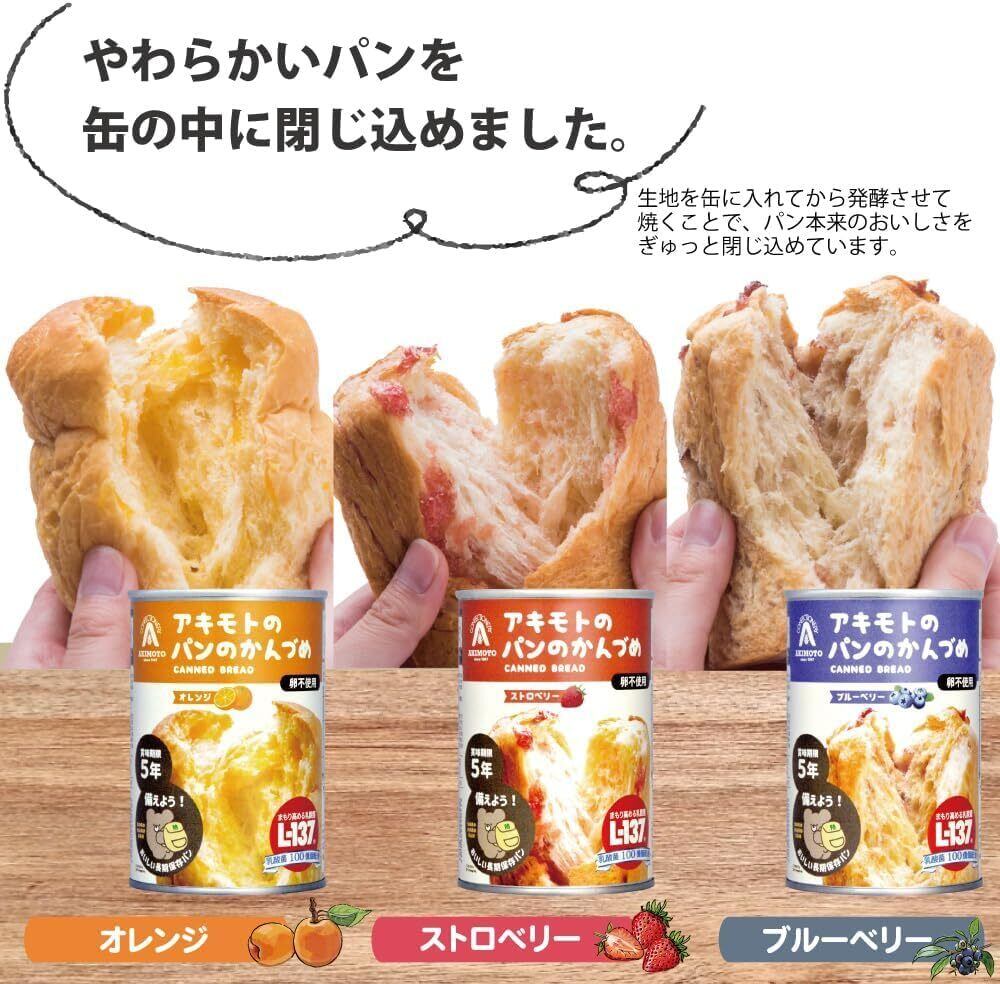 賞味期限5年 パン・アキモト 3種 24缶セット 乳酸菌入り パンの缶詰 備蓄用 防災 非常食 3種各8缶(ストロベリー・ブルーベリー・オレンジ)
