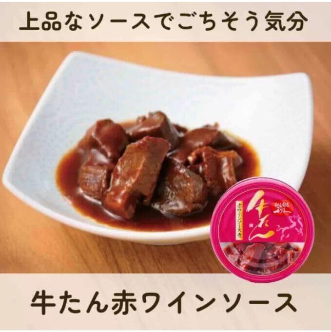 仙台牛たんの名店「利久」がお届けする、極上の缶詰シリーズ。 本品は、厚切りの牛たんを芳醇な赤ワインソースでじっくり煮込み、柔らかく上品な味わいに仕上げました。お店でしか味わえないような特別感をご自宅で楽しめます。