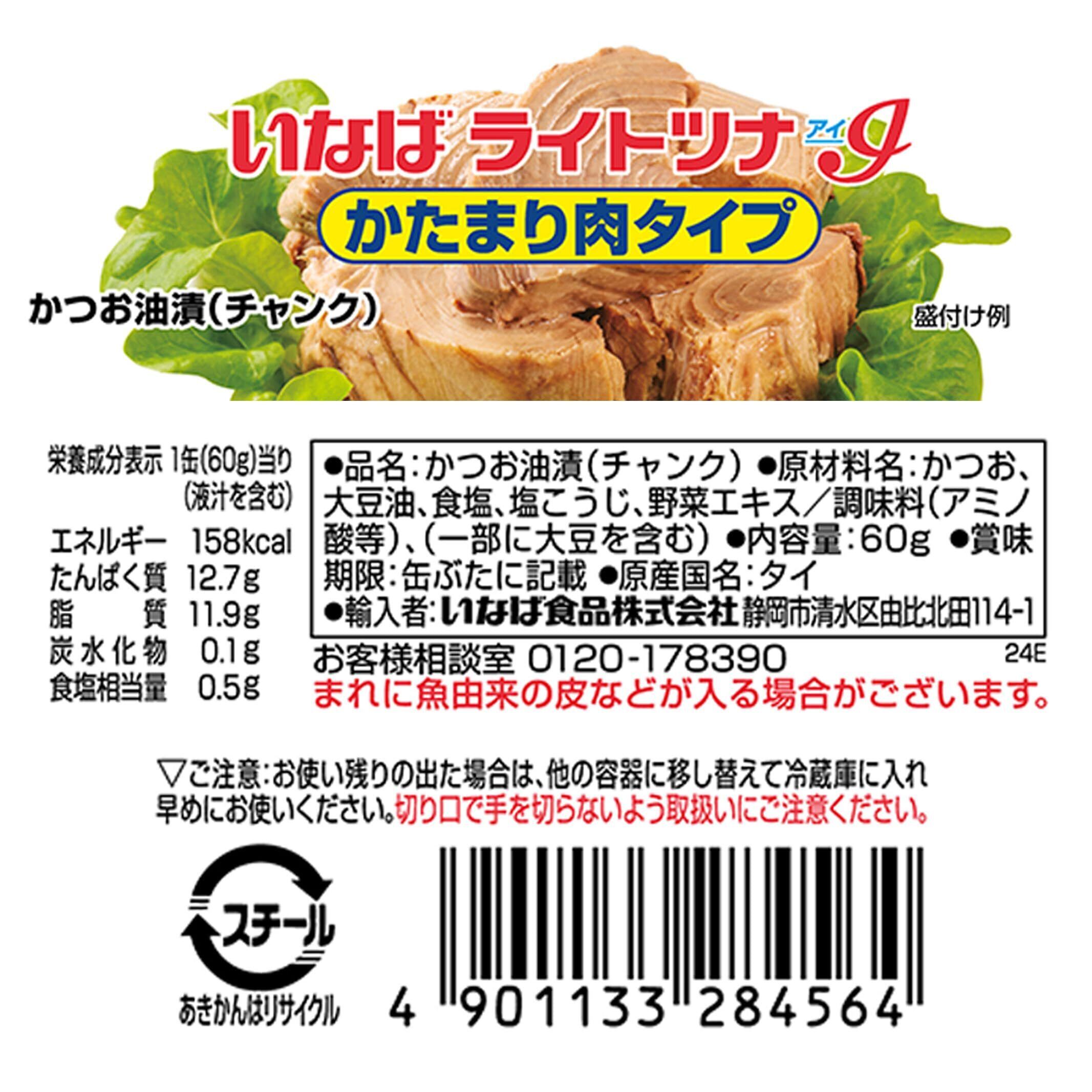 いなば食品 ライトツナアイチャンク かたまり肉タイプ 60g ×6個