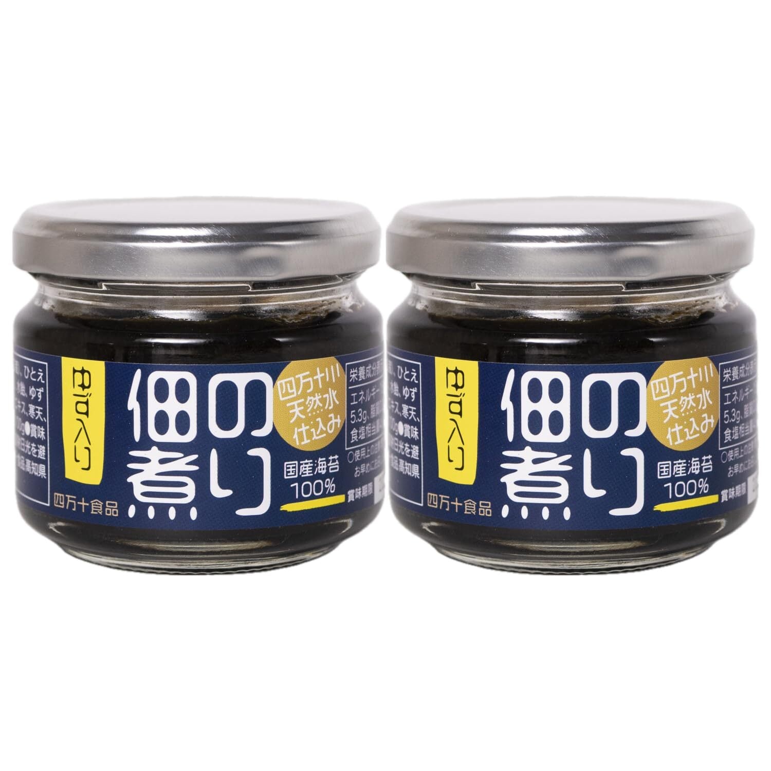 四万十川の天然水を使用して、国内産の黒のり(あまのり)と青さのり(ひとえぐさ)をバランスよく配合しています。旨味の強いたまり醤油に帆立エキスと鰹節エキスを加え、海苔の風味と魚介の旨味たっぷりの佃煮に仕上げています。