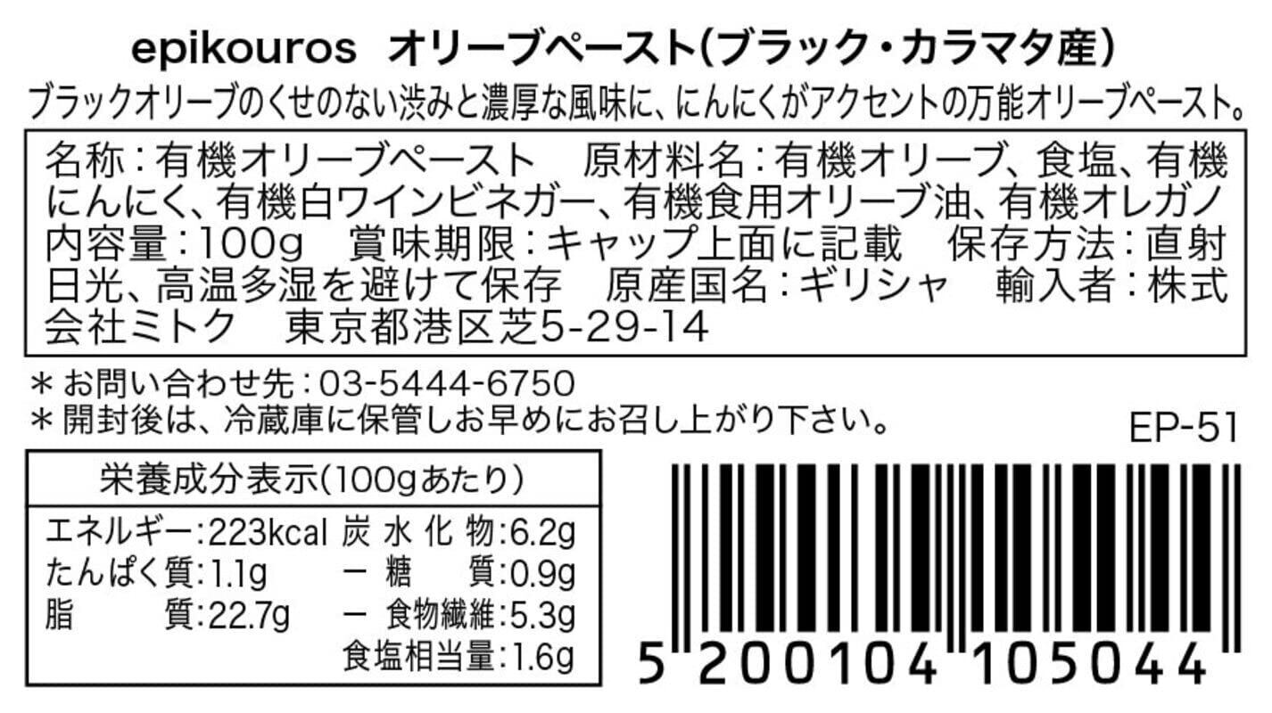 エピクロス 有機オリーブペースト (ブラック・カラマタ産) 100g ×2個 (オーガニック) (有機JAS認証品) (タプナード)