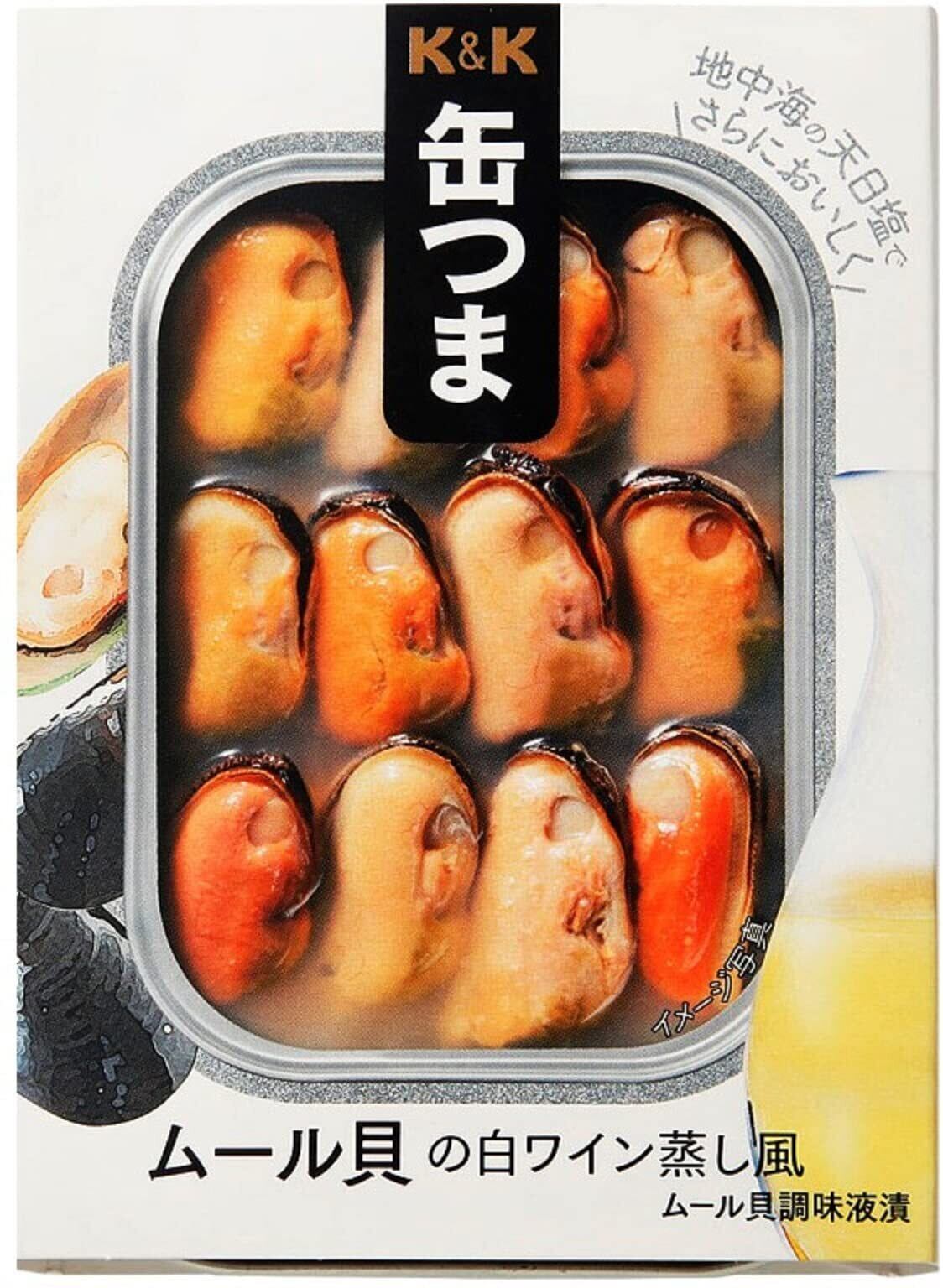 そのままおつまみになる缶詰、それが『缶つま』! ! 缶詰だからおいしい素材をおかずにしました。1712年創業の国分株式会社が手がけるK&K。100年以上の歴史を持つ信頼のブランドです。白ワインで引き立てた、西欧料理に多く使用されるムール貝の独特の風味を手軽にお楽しみいただけます。