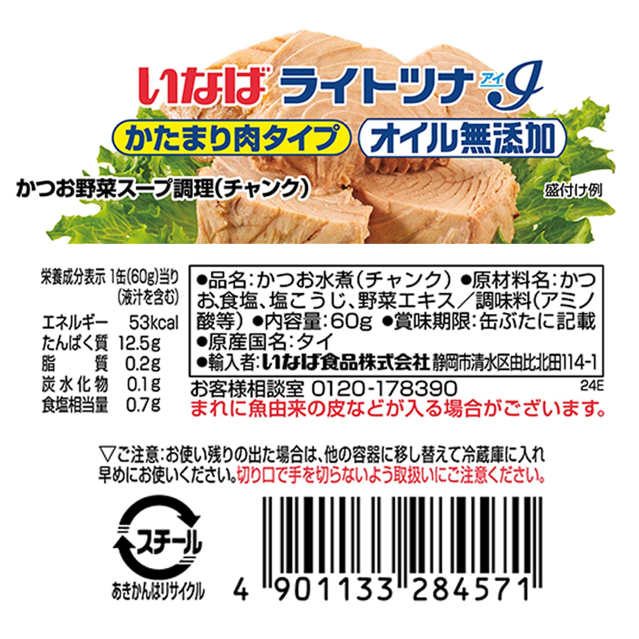 INABA いなば食品 ライトツナアイチャンク オイル無添加かたまり肉タイプ 60g ×6個