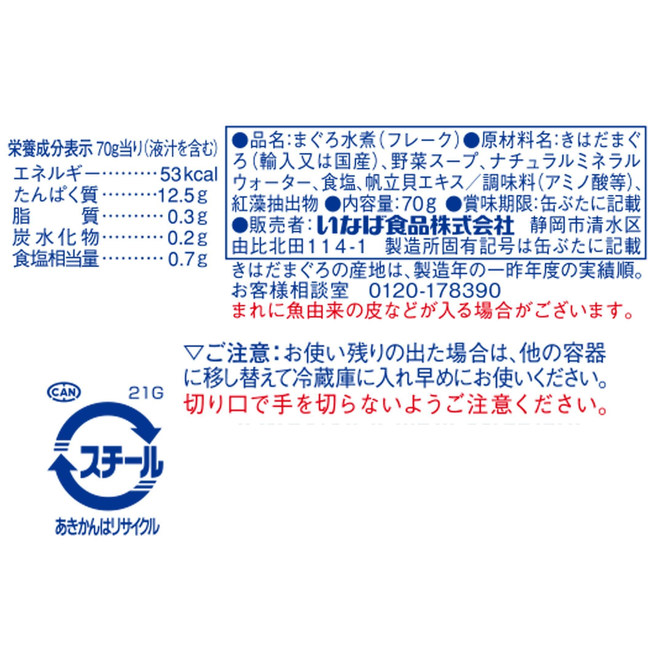 きはだまぐろ(輸入又は国産)、野菜スープ、ナチュラルミネラルウォーター、食塩、帆立貝エキス/調味料(アミノ酸等)、紅藻抽出物
