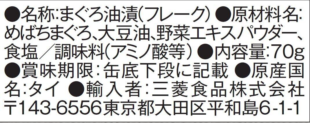 原材料:めばちまぐろ、大豆油、野菜エキスパウダー、食塩、調味料(アミノ酸等)