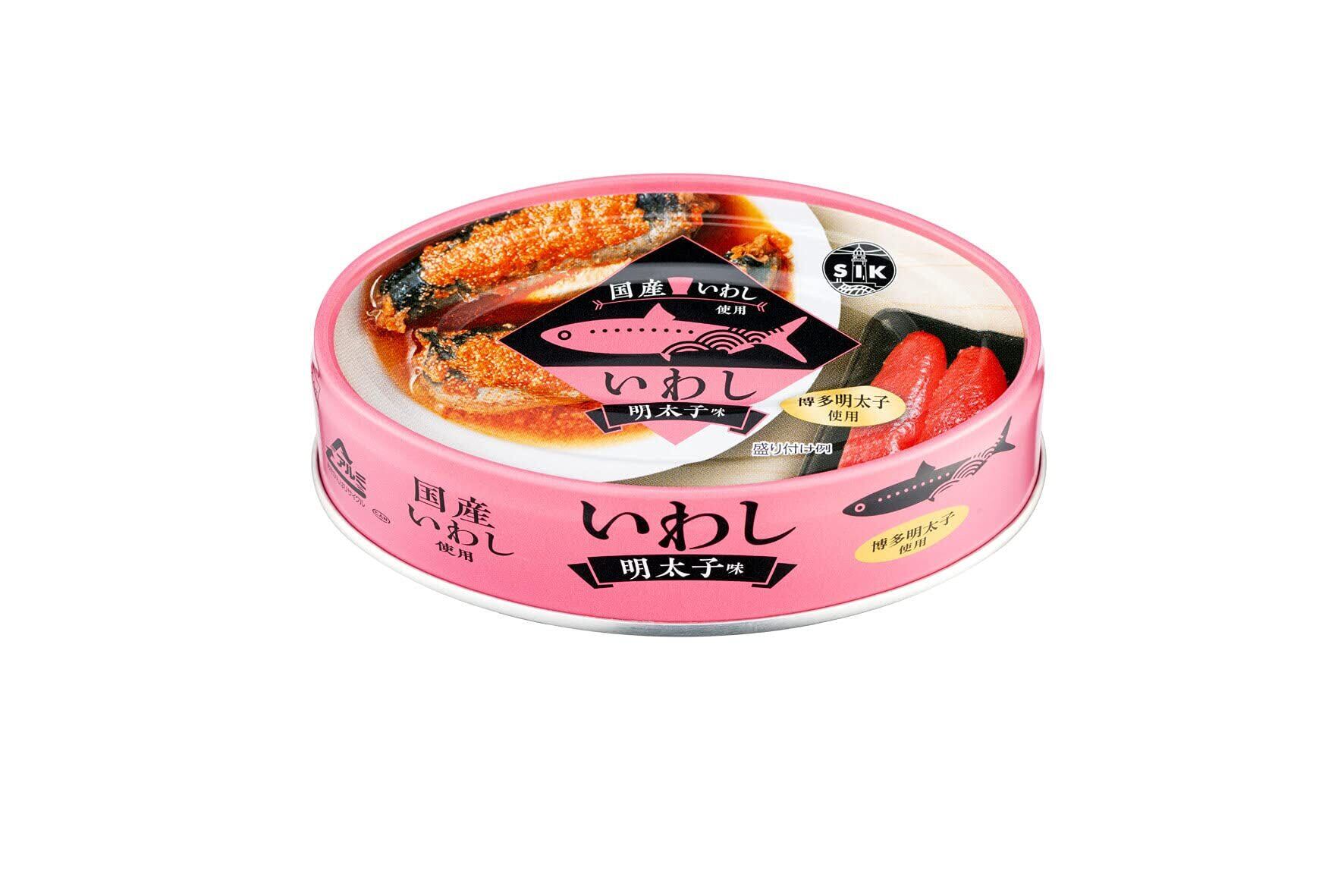 原材料:いわし(国産)、唐辛子調味料、辛子明太子、調味料 栄養成分表示(1缶100g当たり):エネルギー196kca、たんぱく質16.6g、脂質11.7g、炭水化物6.0g、食塩相当量1.7g