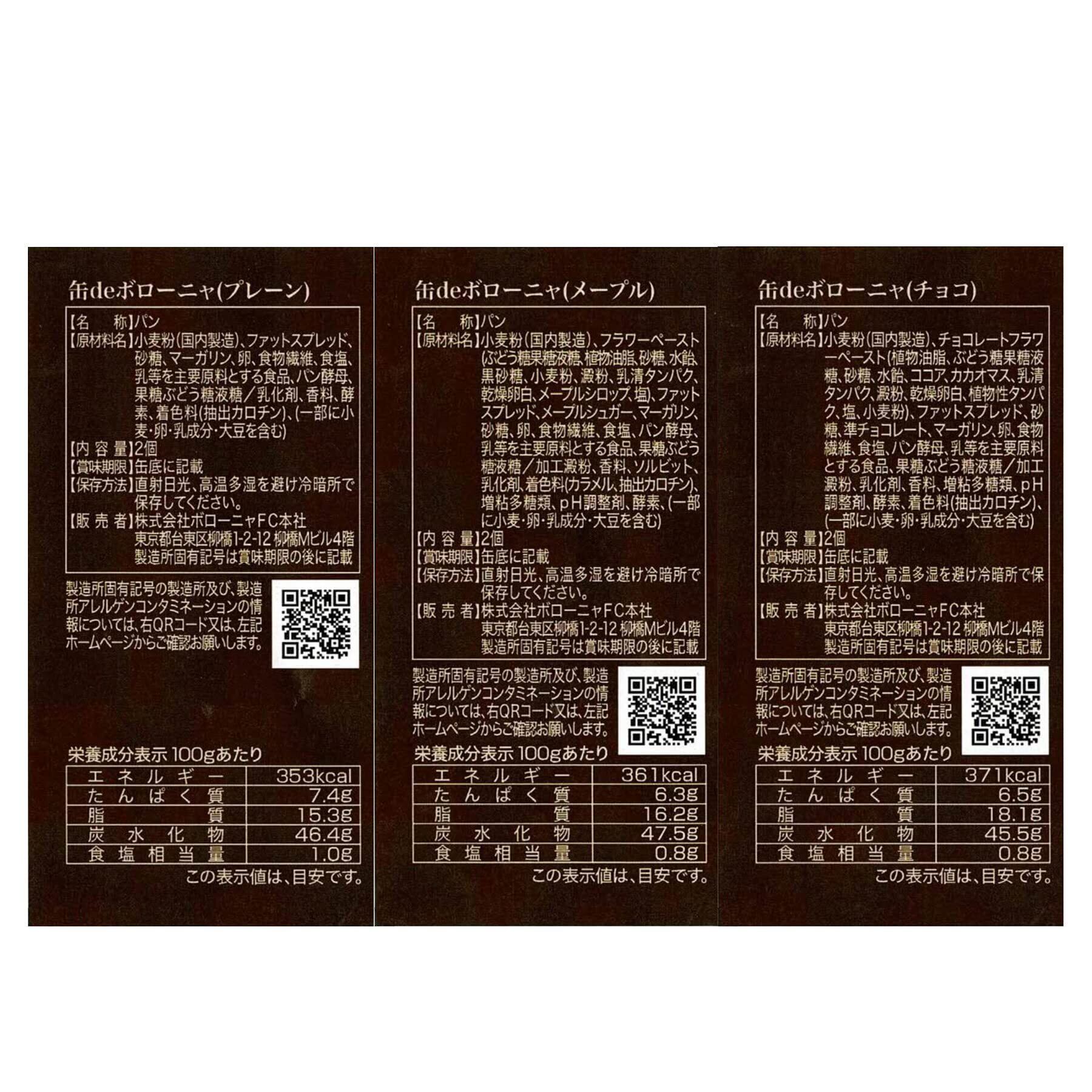 内容量:約50g×2個/12缶(プレーン、チョコ、メープル各4缶)