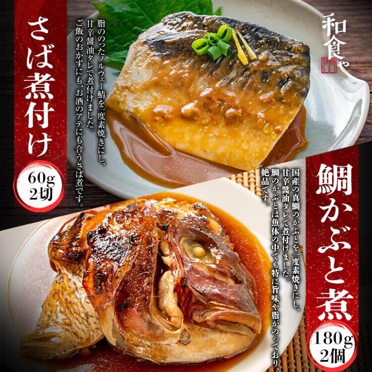 【内容量】 さば醤油煮レトルト60g2切 金目鯛醤油レトルト200g1尾 さばの塩焼きレトルト60g2切 かごかます塩焼きレトルト60g2切 鯛かぶと煮レトルト180g2個 にしん塩焼きレトルト60g4切 ほっけ塩焼きレトルト60g4切
