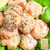 半個体状ドレッシング(砂糖、植物油脂、卵加工品、食酢、その他)、えび、小麦粉、でん粉、パーム油、