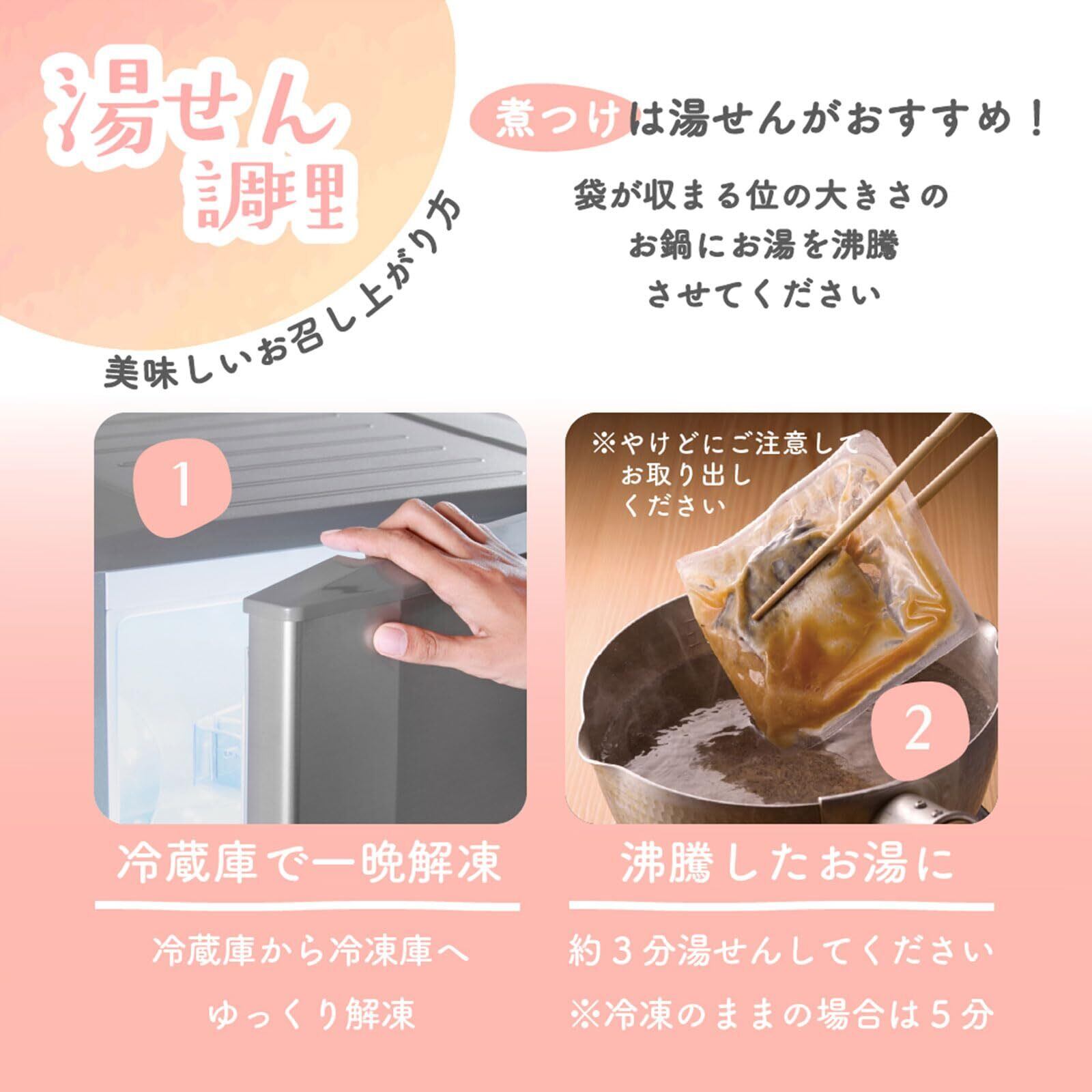 簡単調理: 解凍後、最短1分で美味しくお召し上がりいただけます。 電子レンジで袋から商品をお皿に移して温めるか、湯せんするだけ。