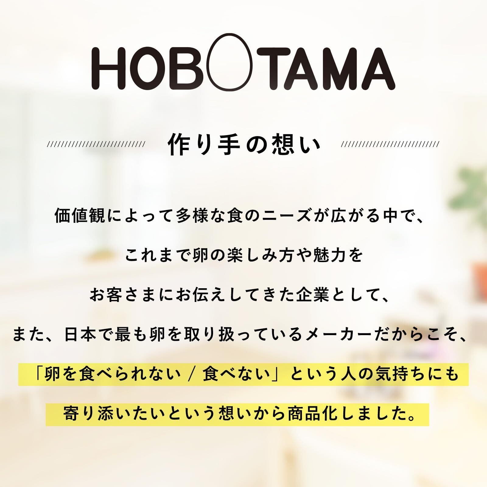 HOBOTAMAは植物生まれのプラントベースフードです。ふわとろ食感のスクランブルエッグのような味わいです。