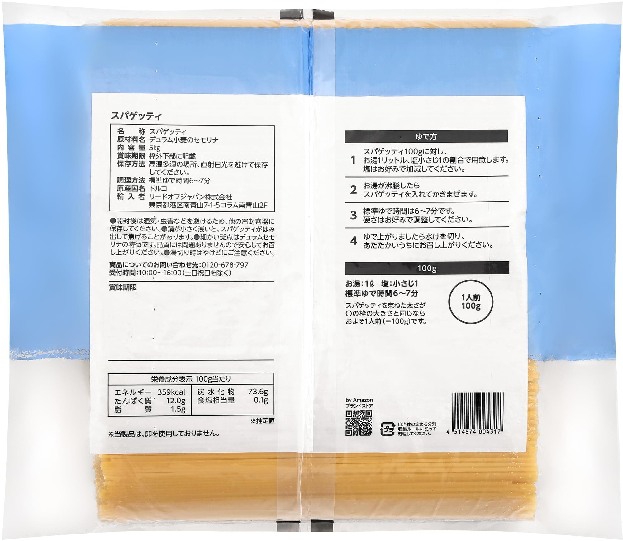 ●高温多湿の場所、直射日光を避けて保存してください。●開封後は湿気・虫害などを避けるため、他の密封容器に保存してください。●鍋が小さく浅いと、スパゲッティがはみ出して焦げることがあります。●細かい斑点はデュラムセモリナの特徴です。品質には問題ありませんので安心してお召し上がりください。
