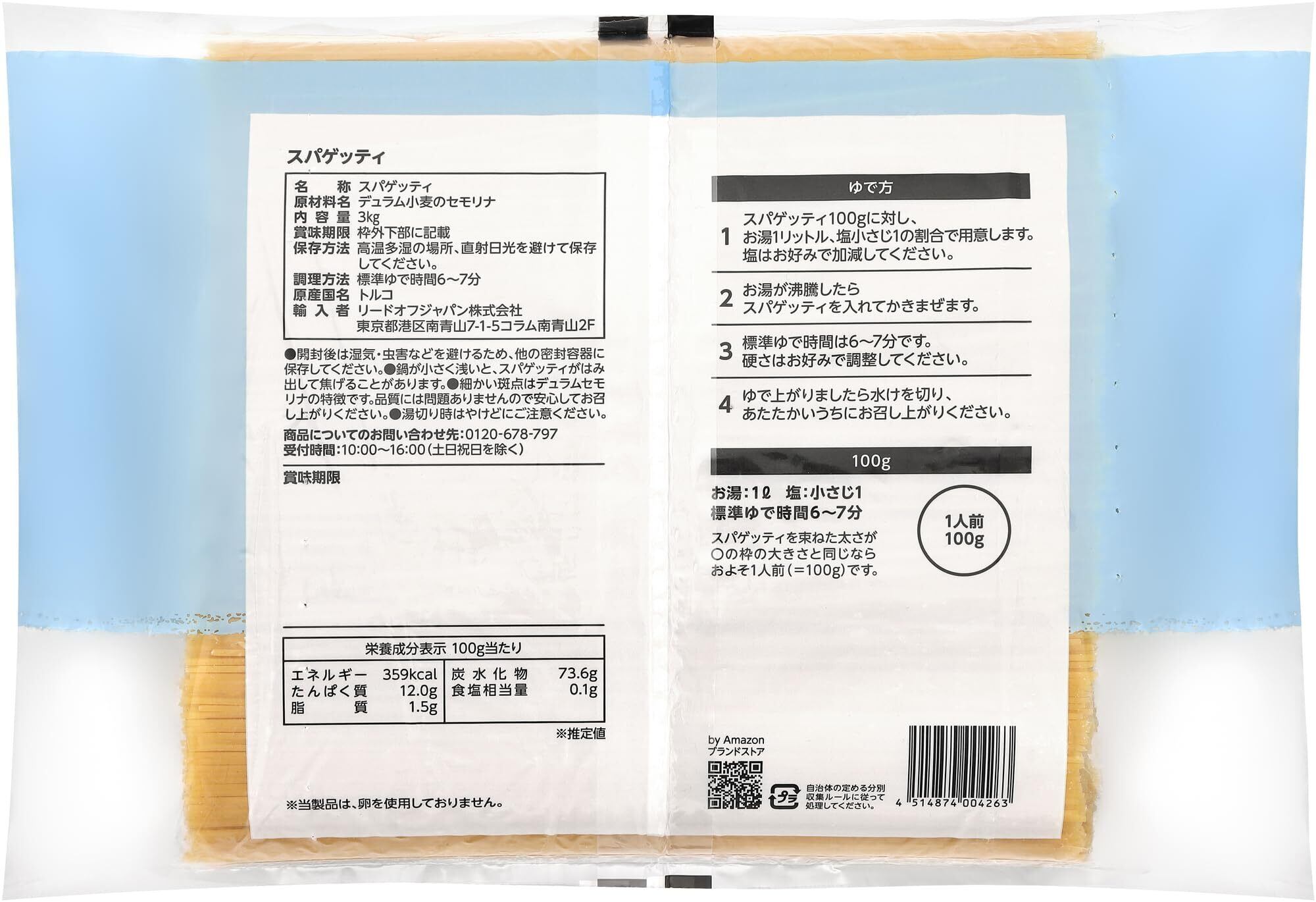 ●高温多湿の場所、直射日光を避けて保存してください。●開封後は湿気・虫害などを避けるため、他の密封容器に保存してください。●鍋が小さく浅いと、スパゲッティがはみ出して焦げることがあります。●細かい斑点はデュラムセモリナの特徴です。品質には問題ありませんので安心してお召し上がりください。