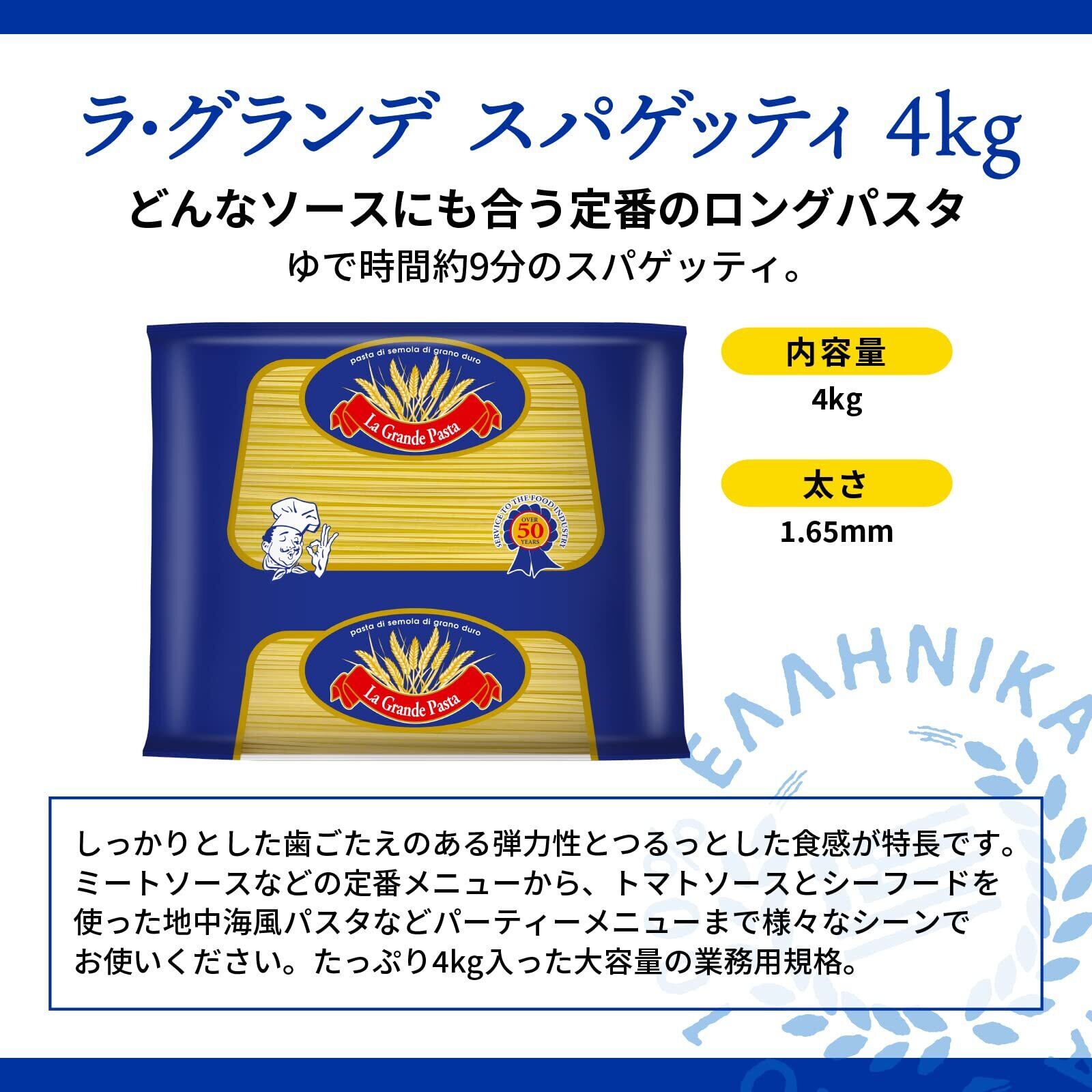 TOMINAGA(トミナガ) ラティーノ スパゲッティ 4kg 大容量 ギリシャ産 パスタ 1.65mm デュラム小麦100% 麺 業務用 電子レンジ