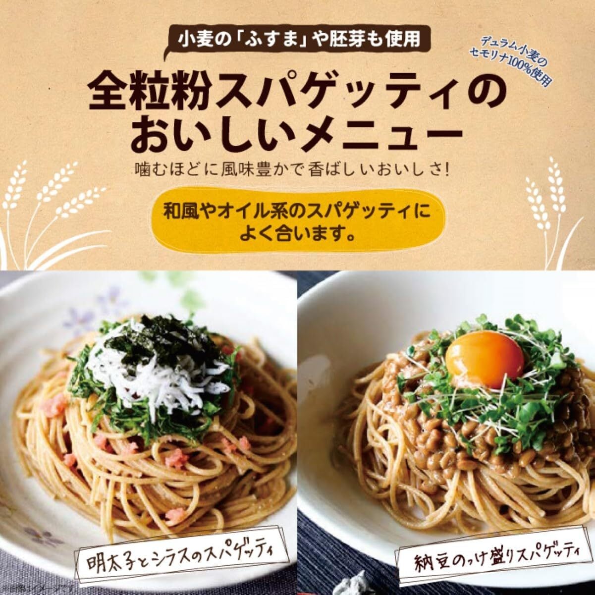 小麦から表皮・胚芽を取り除かずにそのまま製粉した「全粒粉」を使用したスパゲッティ