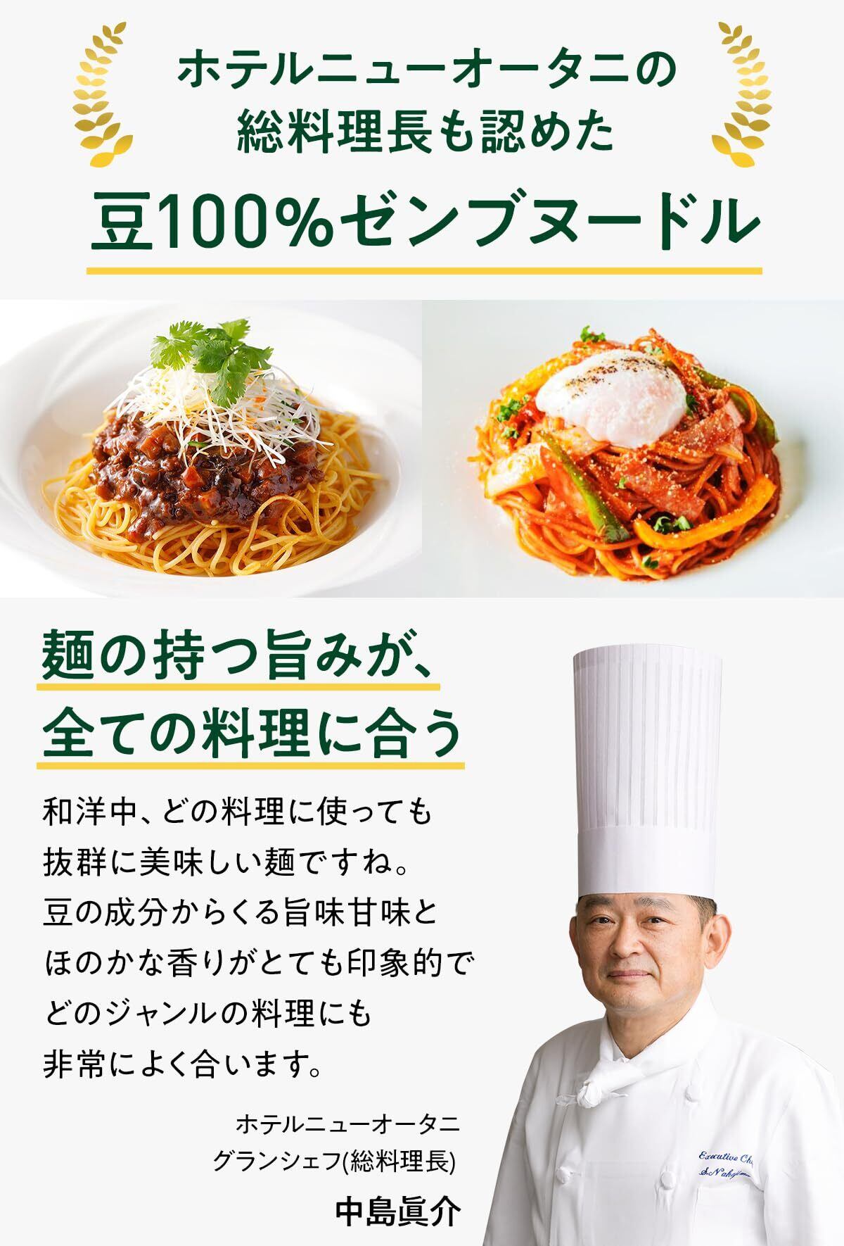 【糖質オフ パスタ】 :豆のうす皮までまるごと使い、まるごと豆の栄養をそのまま摂ることができます。いつものパスタよりも糖質40%オフ*2。そして1食で1/2日以上の食物繊維がとれ、いつものパスタよりも4.1倍。さらに低GI *3。糖質オフ *2で罪悪感のない「ZENBヌードル」は、そんな想いに寄り添う新感覚・新食感の「新しい主食」です。*2いつものパスタより糖質40%オフ、ゼンブヌードル喫食時1人前の糖質36.2g/食(分析による推定値)、日本食品標準成分表2015年版(七訂) *3 GIとは、グリセミックインデックスの略で、食品に含まれる糖質の吸収度合を示す値のことです。低GI食品 とは、糖質の吸収が穏やかな食品のことです。
