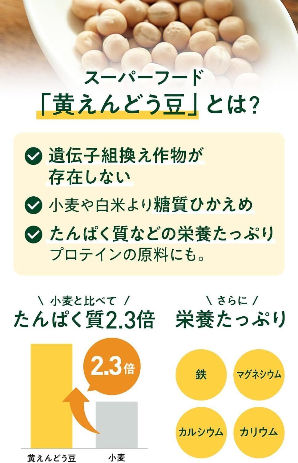 【植物性たんぱく質がとれる】黄えんどう豆は、食物繊維や植物性たんぱく質が豊富なのに、脂質は少ない素材。その黄えんどう豆だけを使って作ったゼンブヌードルは不足しがちな栄養*4 をとることができ、ダイエット 中の栄養補給にぴったりです。*4 食物繊維、鉄分のこと