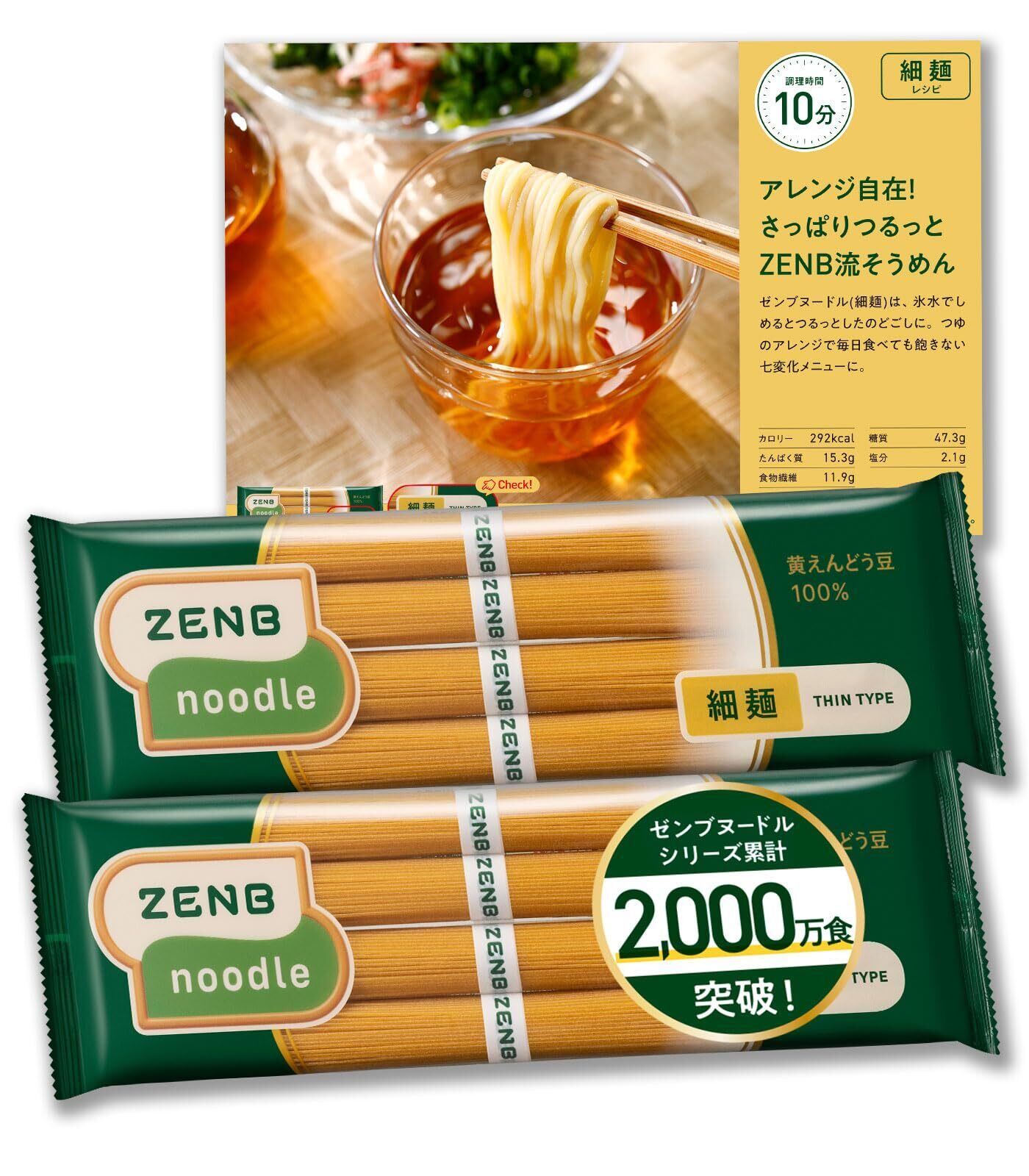 【 細麺タイプの豆100%麺 】ZENB ゼンブ ヌードル 細麺 8食 (2袋) 早ゆで3分 そうめん [ 糖質オフ グルテンフリー 糖質制限 腸活 時の 食物繊維 補給に ダイエット 時の栄養補給に 置き換え たんぱく質 鉄分 レンジ 調理可 ]