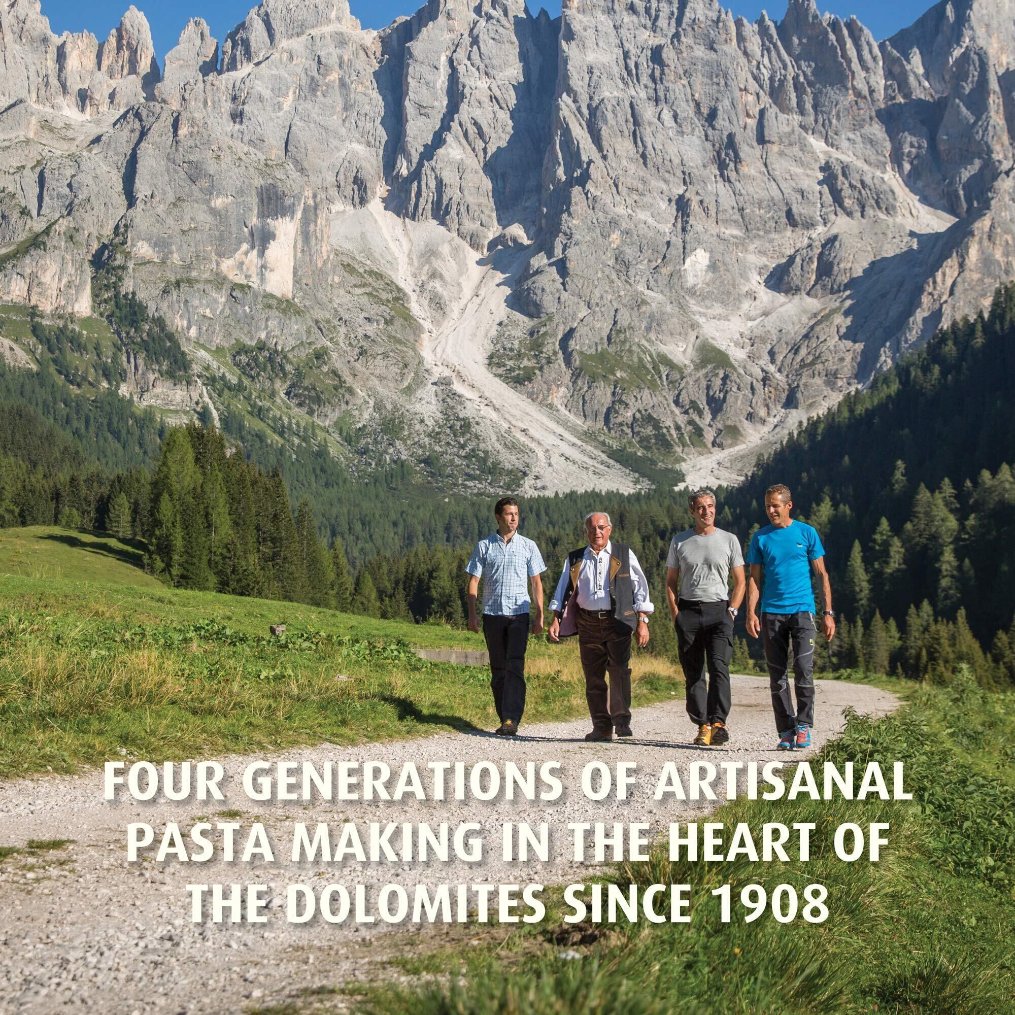 1908年以来、同じ価値を持つ同じ家族が、ドロミテの美しい風景の中で情熱的に活動してきました。 Monograno Felicettiは、地域の山から直接採れた湧き水のみを100%使用することを約束し、セモリナ粉と小麦粉は100%オーガニックで全体的です。
