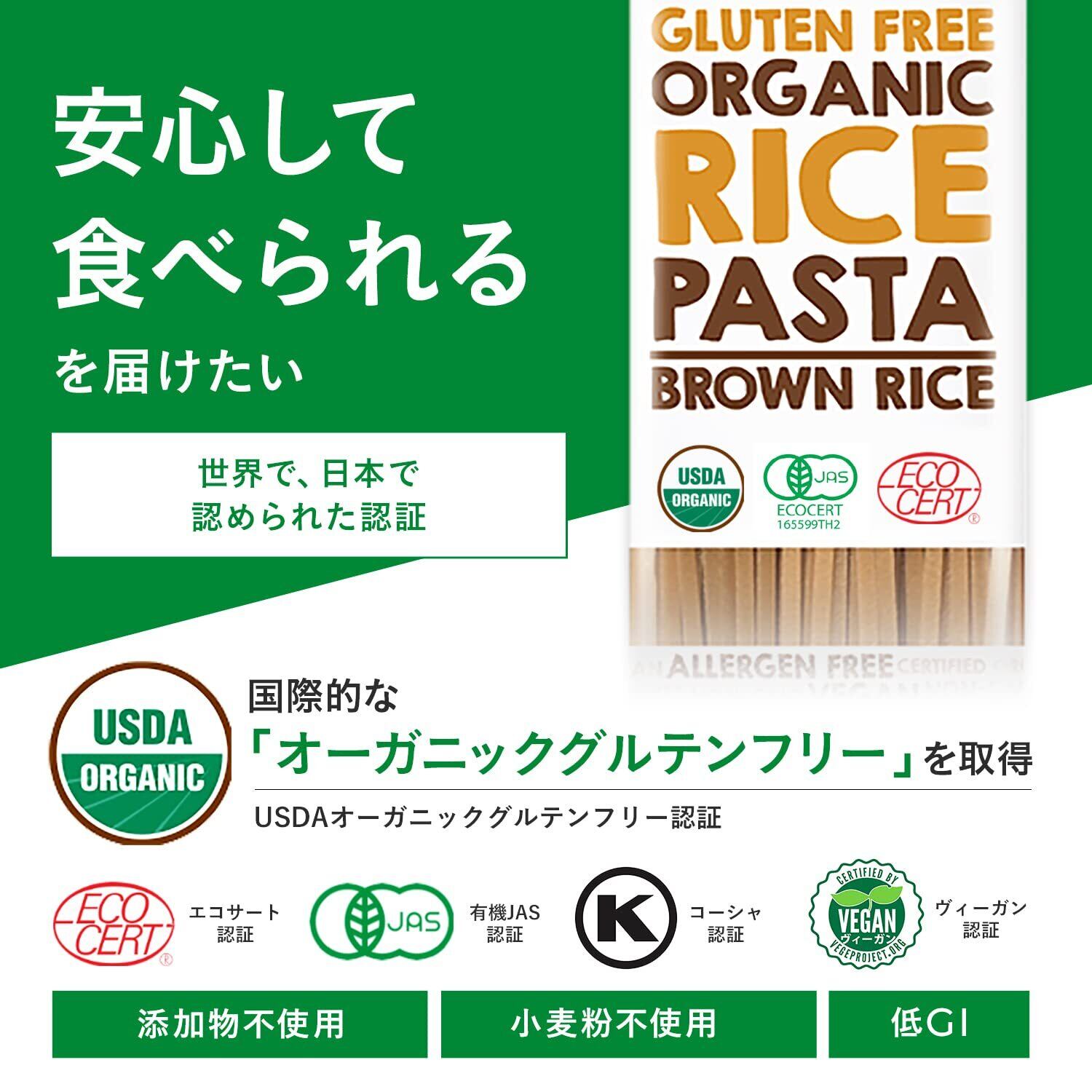 【 オーガニック 有機 JAS認定 無添加 ライスパスタ 】PERFECT EARTH(パーフェクトアース)は国際的なオーガニック認定機関の厳しい審査基準を通過したタイのジャスミンライスのみを使用しています。ヴィーガン認証、コーシャ認証も取得しており、どなたでも安全にお召し上がりいただけるライスパスタです。