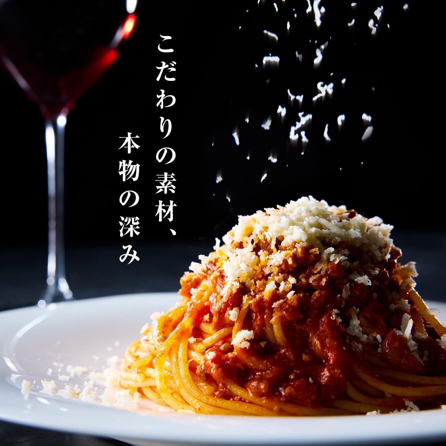 “予約でいっぱいの店”として有名な東京・銀座「ラ・ベットラ」落合務シェフ監修。粗挽きの牛挽肉を完熟トマト、赤ワインでじっくり煮込んだ中に、生クリームを加えたコク深い味わい。