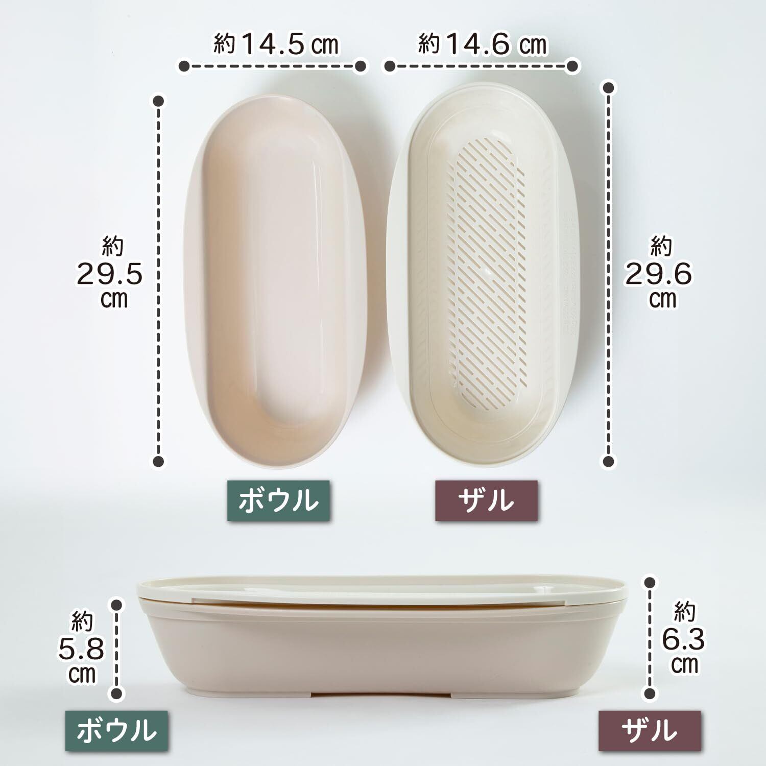 サイズ:[ボウル]約145×295×58mm、[ザル]約146×296×63mm