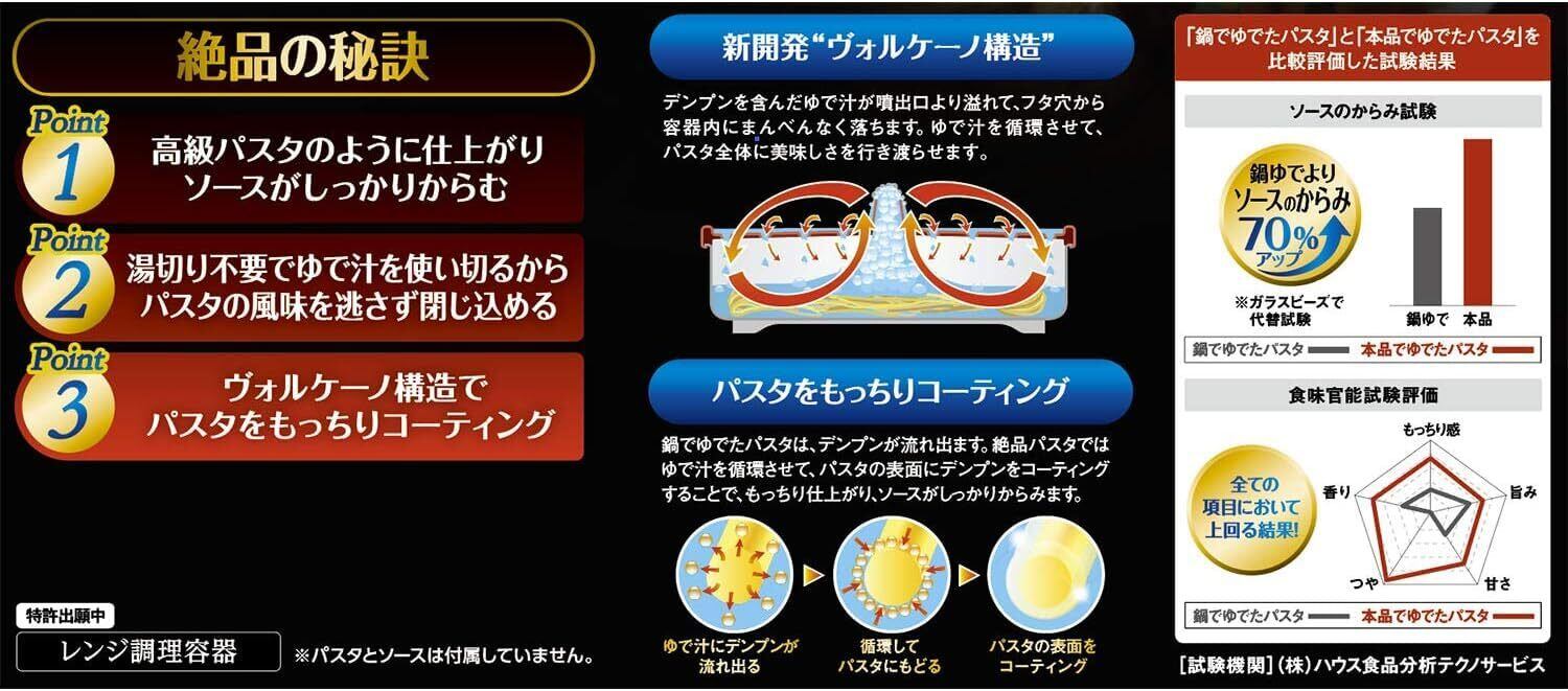 鍋ゆでより美味しく、レンジで簡単にパスタができる(※食味官能試験による結果)