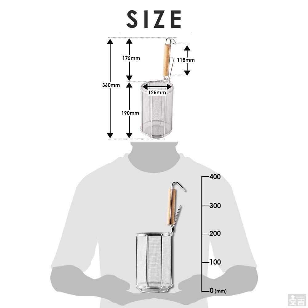 20メッシュの極細目で細い麺にも対応しております。 スパゲッティやフィットチーネに代表されるロングパスタの他、マカロニやペンネ、シェルといったショートパスタにも最適です。 テボのザル部は2サイズのご用意がございます。麺の長さによりお選びください。 SUS304ステンレスを採用しているので腐食にも強く衛生的です。 パスタ以外のおそばやラーメン、うどんといった麺類の揚げざるとしてもご使用が可能です。