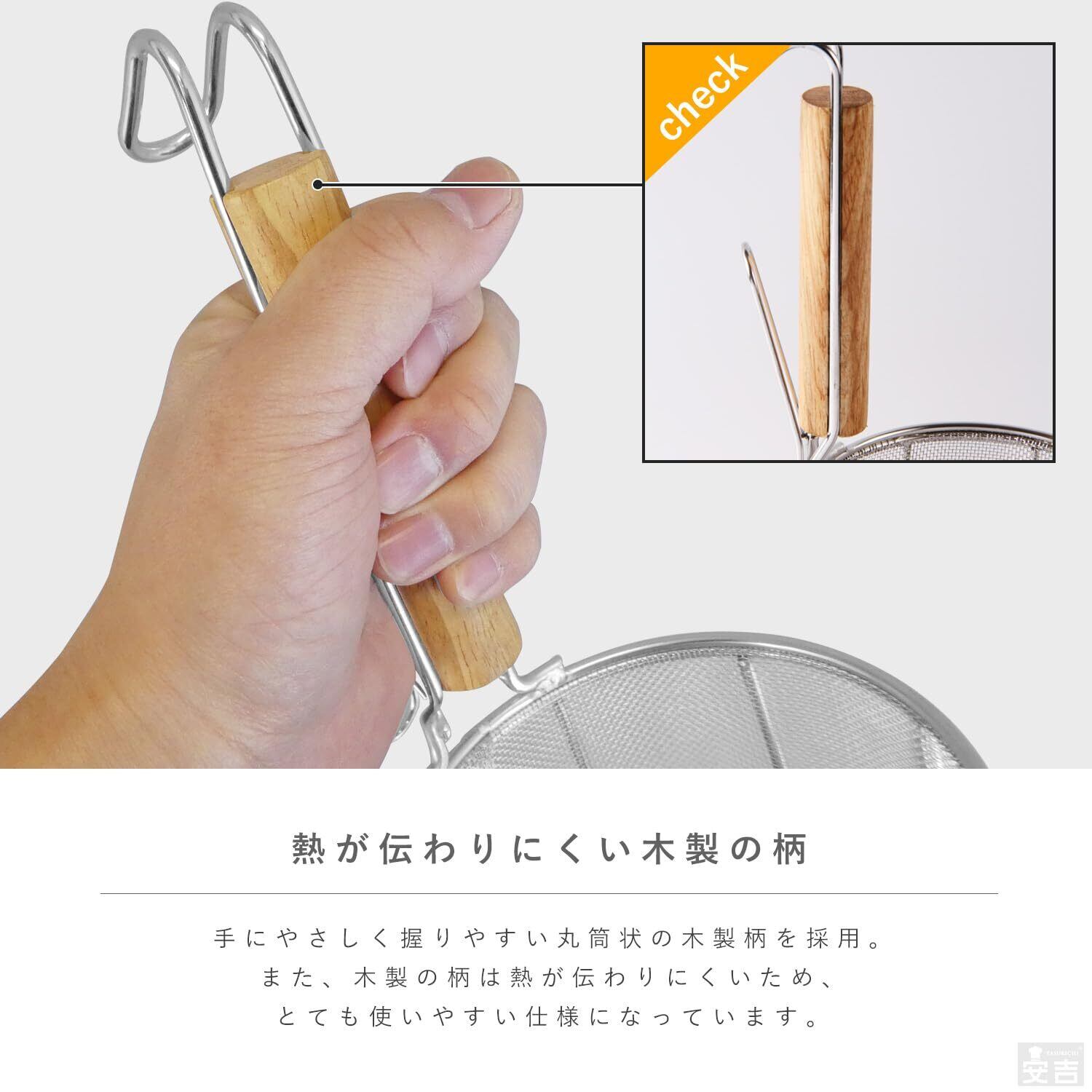 業務用 パスタてぼ 20cm 木柄 18-8 高級ステンレス 2重フレーム構造 スパゲティ 湯切り ざる