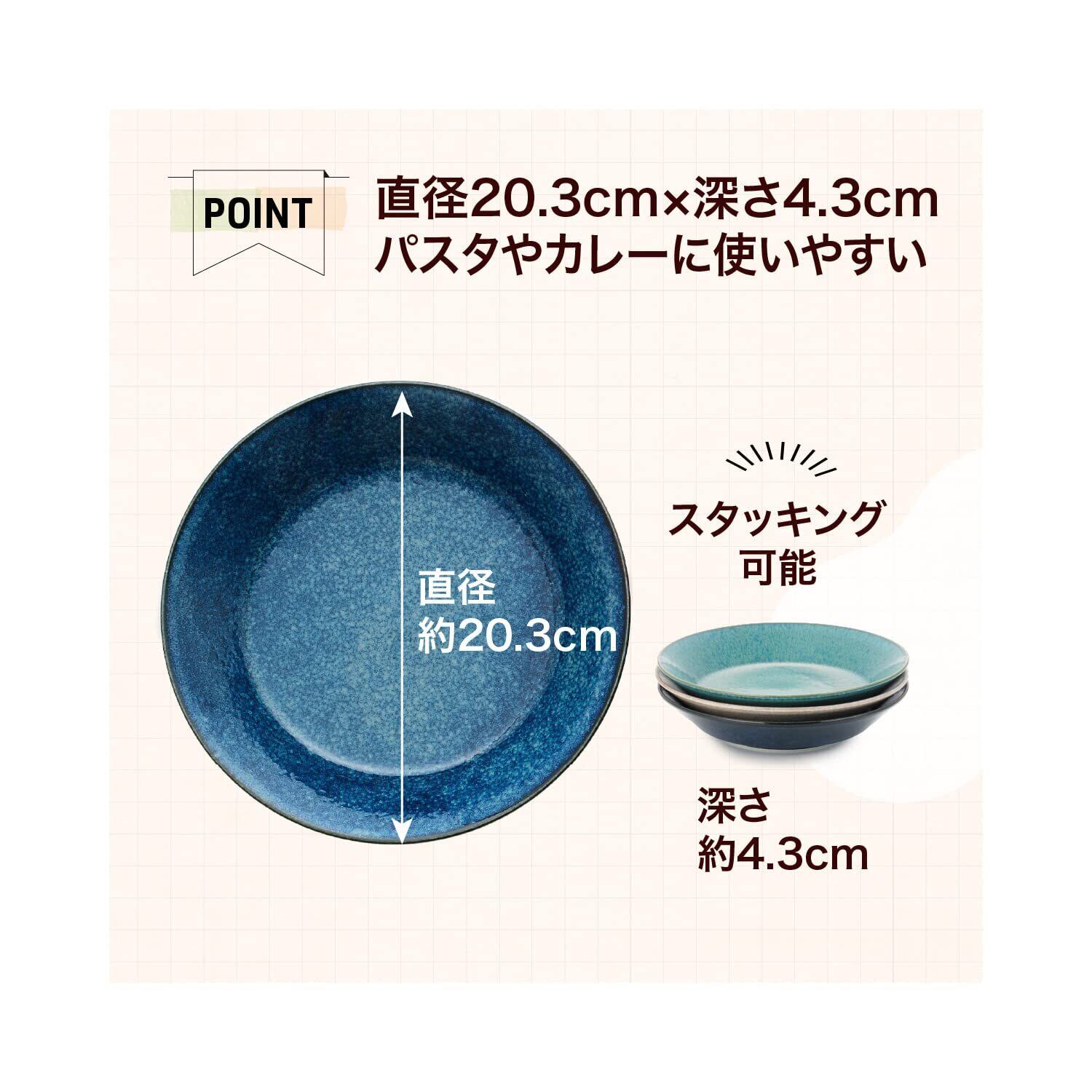 カレー皿 ブルー・ホワイト・グリーン 約径20.3×高4.3cm ナチュラルカラーカレー&パスタ皿(3色組) 20201235