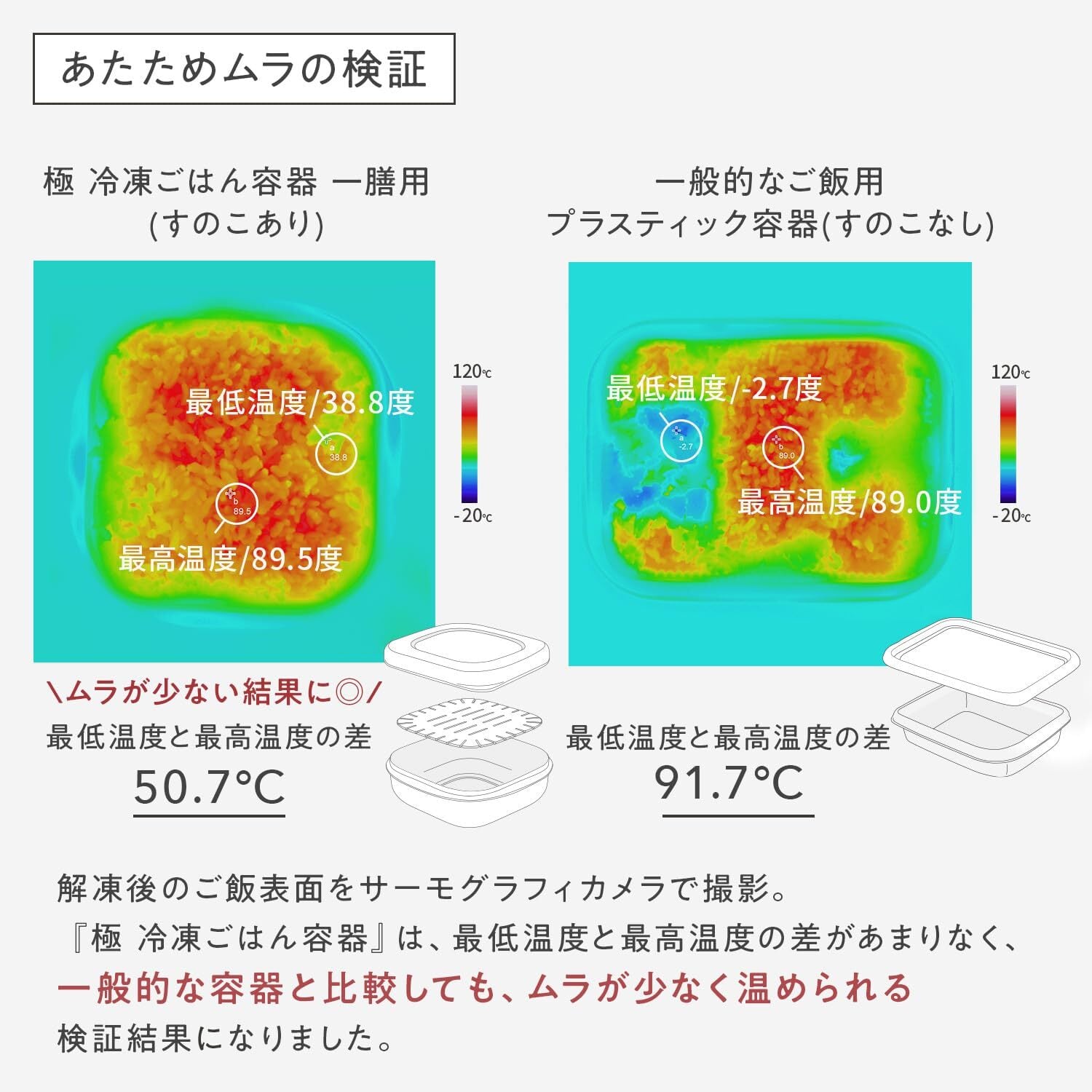 【保存・解凍時のコツ】万が一、ご飯がふっくら解凍できないと感じた際は次の点をご確認ください。・長時間保温したご飯を冷凍保存すると、ふっくら解凍できない可能性があります。なるべく炊き立ての状態で保存してください。・レンジ加熱し過ぎると固くなってしまう原因となる場合がございます。フタが冷たくても温まっている場合もありますので、一度開けてご確認ください。温め完了後、庫内に30秒ほどおいておくと、よりふっくらとした食感に仕上がります。