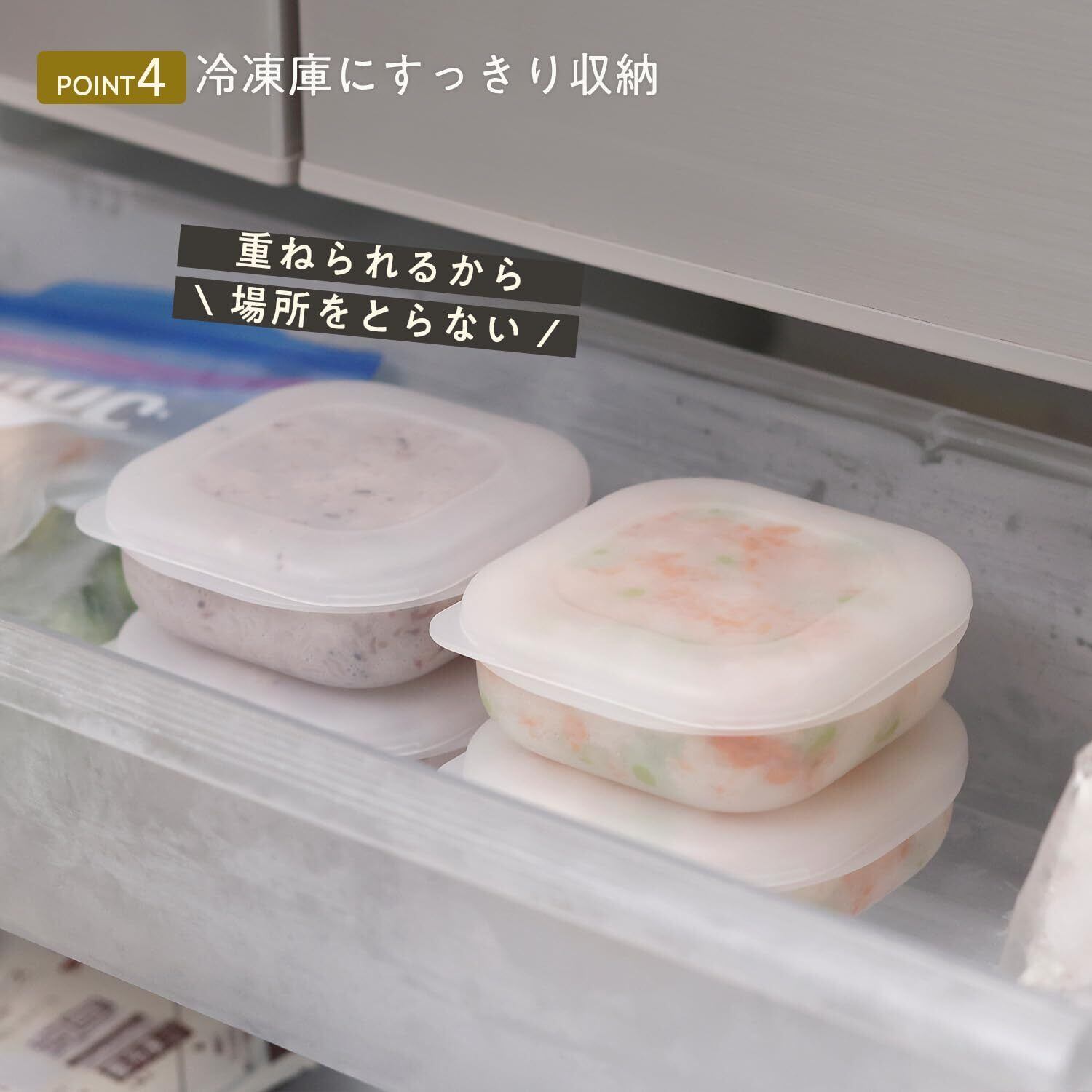 【シンプルなデザインでお弁当にも】重ねて冷凍庫にスッキリ収納。一つで一膳分(約180g)の炊き立てご飯を冷凍できます。また、シンプルなデザインだから、このまま食卓に出したり、お弁当のごはん容器としても違和感なく使えます。