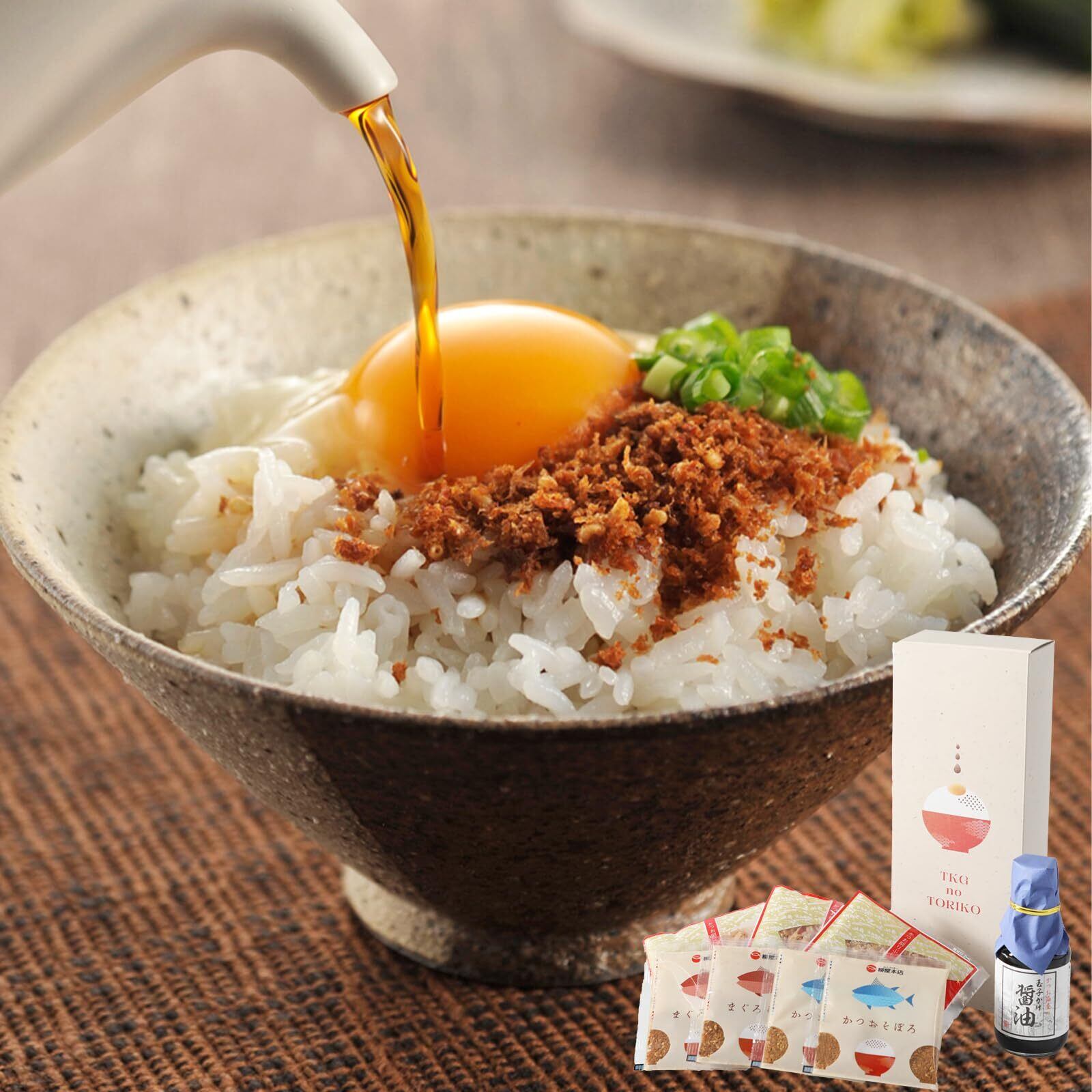 ちょっと贅沢な ご飯のお供 TKG-M ごはんのおとも 小袋 ギフト 玉子かけ ご飯 セット 卵かけご飯 専用醤油 ( 玉子かけ醤油 ×1個 鰹そぼろ ふりかけ ×2個 鮪そぼろ ふりかけ ×2個 かつお節 花削り×3個) そぼろ 詰め合わせ プレゼント 取り寄せ 人気 ランキング 卵かけ 玉子かけご飯 高級 柳屋本店 TKGnoTORIKO