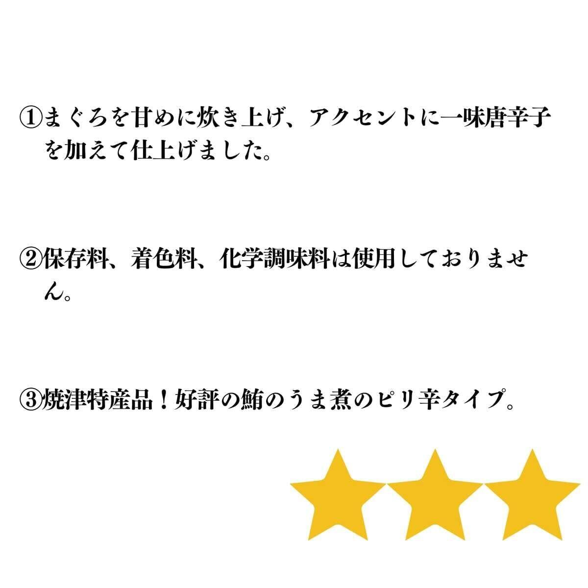 名称/ 佃煮 原材料名/ 鮪(バチ・キハダ・ビン長) 砂糖、醤油、醸造調味料、還元水飴、植物油脂、唐辛子、生姜、寒天 (原材料の一部に大豆、小麦を含む) 原料原産地/ 太平洋全域 内容量/ 120g 保存方法/ 直射日光、高温多湿を避けて保存してください