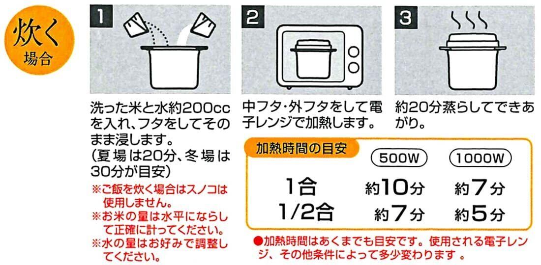 電子レンジでご飯がふっくら炊ける、一合炊き用ご飯調理容器