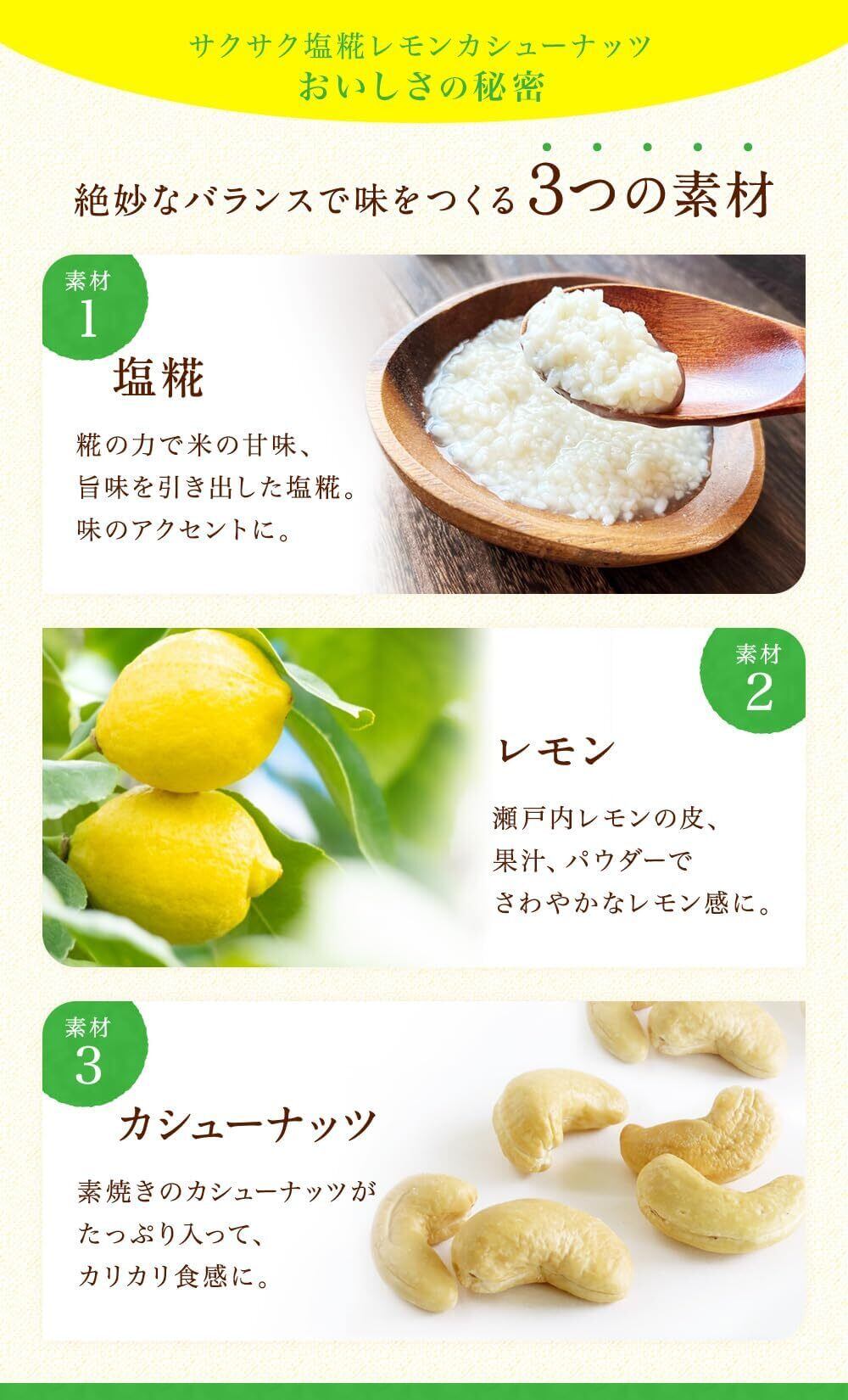 内容量: 【サクサク塩糀レモンカシューナッツ】90gびん×3