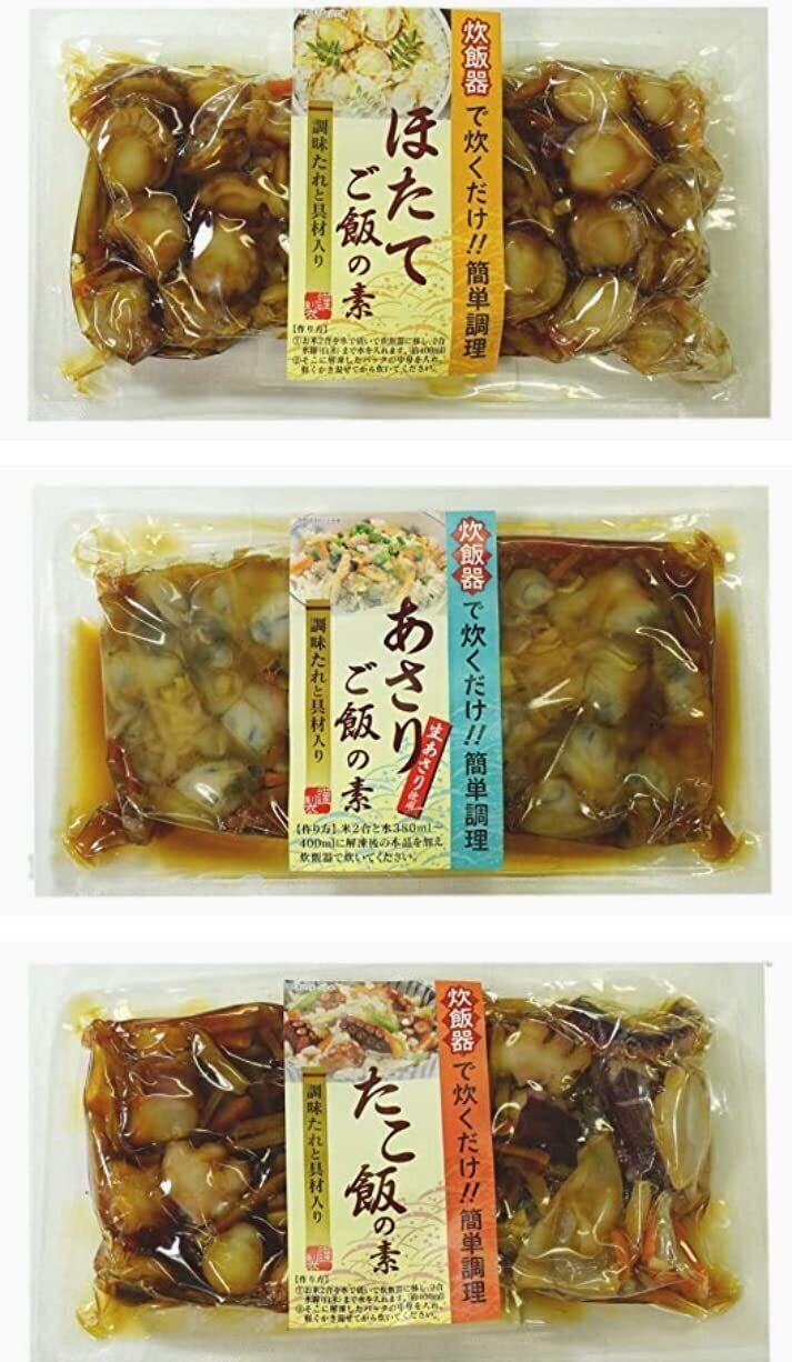 海鮮炊き込みご飯の素 ほたて、あさり、たこ炊込みご飯 味比べ3点セット《冷凍》