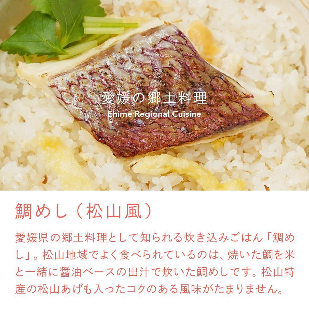 愛媛名物 鯛めしの素 愛媛産真鯛 MEDETAIME 2合炊き 紅 松山風 鯛飯 炊き込みごはん 国産 瀬戸内海産 (1個, 松山鯛めし)