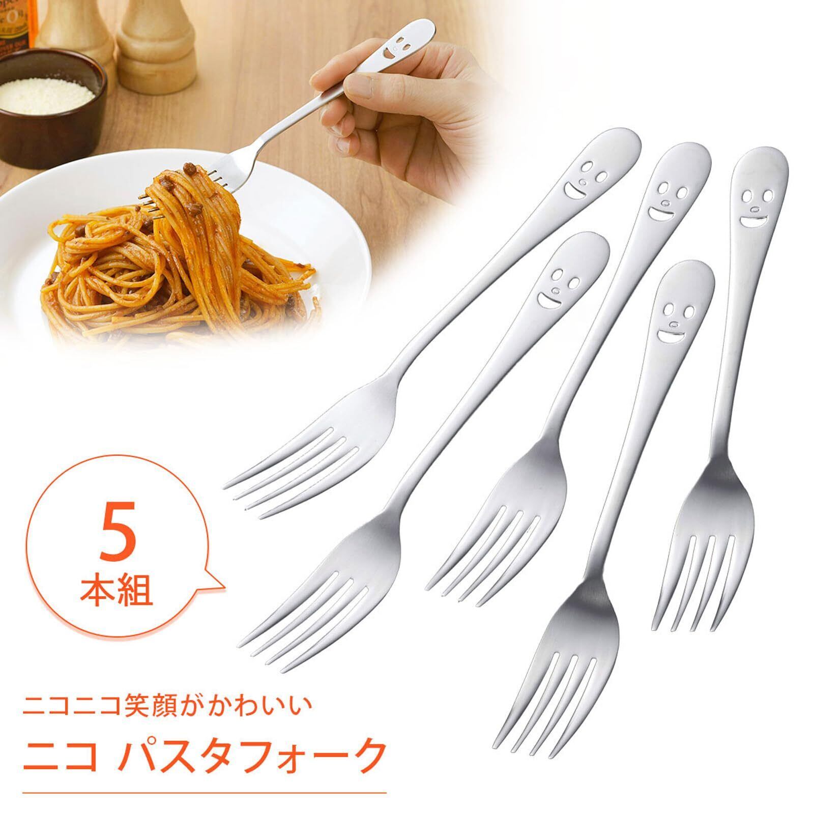 下村企販 パスタ フォーク 5本組 【日本製】 ステンレス 食洗機対応 全長17.5cm 錆びにくい 麺 肉料理 シンプル かわいい ツヤ消し仕上げ カトラリー ニコシリーズ 燕三条 25388