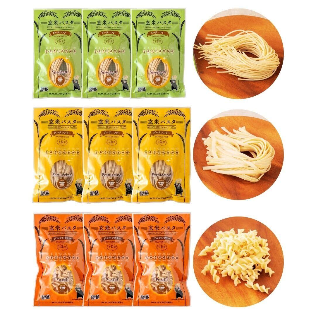 【玄氣堂】グルテンフリー玄米パスタ 3種類セット(スパゲッティ、フェットチーネ、フジッリ)×各3袋 アレルギー特定原材料8品目不使用 熊本県産玄米100%使用