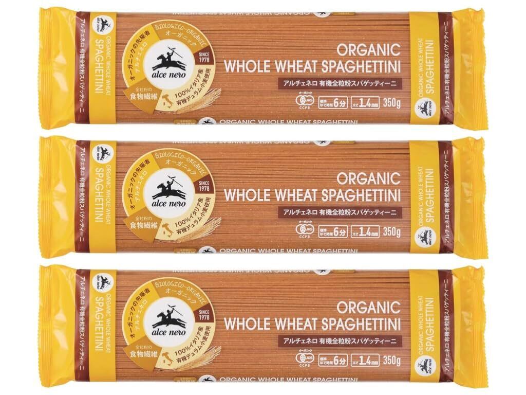 alce nero アルチェネロ 有機全粒粉スパゲッティーニ ORGANIC WHOLE WHEAT SPAGHETTINI オーガニック アルチェネロ 有機パスタ パスタ 有機デュラム小麦使用 食物繊維 全粒粉 胚芽 350g×3袋 (有機全粒粉スパゲッティーニ, 3袋)