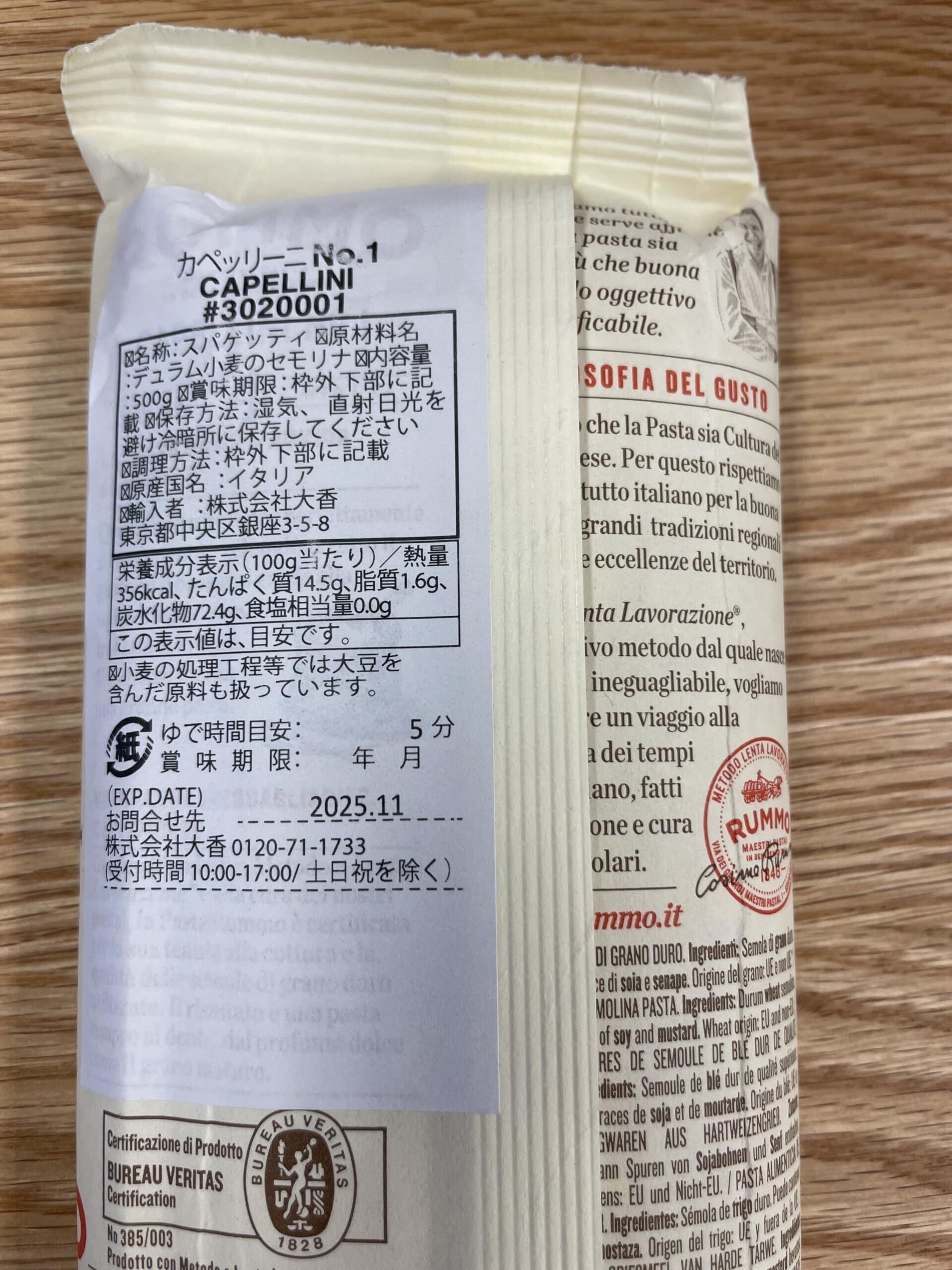 大香 No.1 RUMMO CAPELLINI(ルンモ カペッリーニ) 500g×3袋