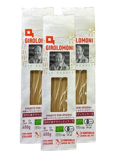創健社 ジロロモーニ 有機スパゲッティセミインテグラーレ 古代小麦グラツィエッラ・ラ <400g>3個