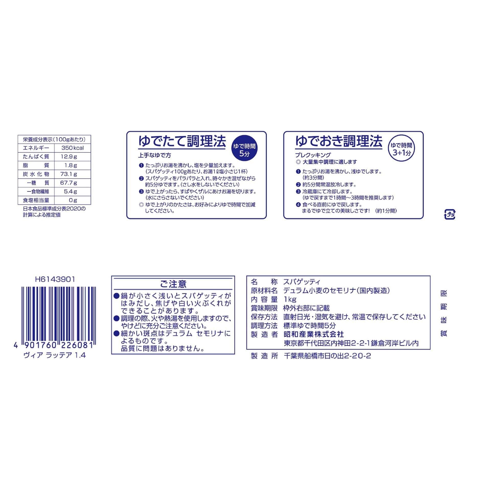 ヴィアラッテアスパゲッティ 1.4MM 1kg ×3個