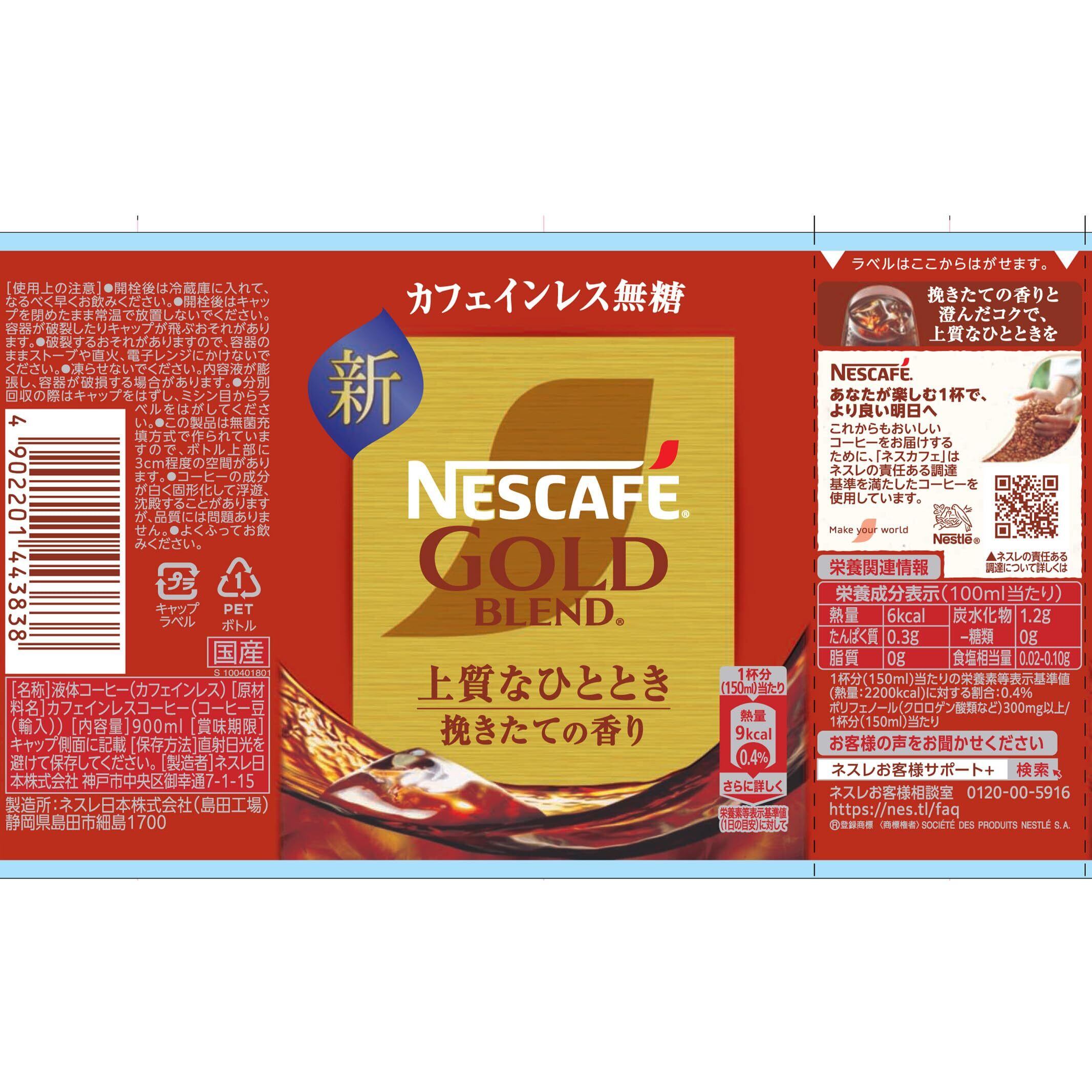 【 カフェインレスコーヒー ペットボトル 】ネスカフェ ゴールドブレンド 上質なひととき ボトルコーヒー カフェインレス 無糖 900ml×12本,アイスコーヒー,ブラックコーヒー,デカフェ