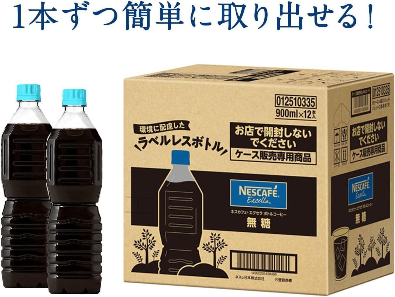 【 コーヒー ペットボトル 】ネスカフェ エクセラ ボトルコーヒー 甘さひかえめ ラベルレス 900ml×12本,微糖,アイスコーヒー