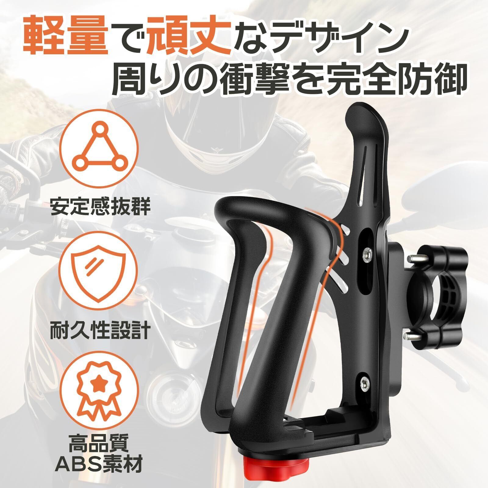 バイク ドリンクホルダー 自転車 ボトルホルダー【360度回転・合金クランプ固定】バイク用ペットボトルホルダー ロードバイク ボトルケージ フレーム ハンドル バー マウント カップホルダー 滑り止めゴム付き 取付け簡単 バイク/自転車/車椅子/ベビーカー/キックボード/ATV/UTV