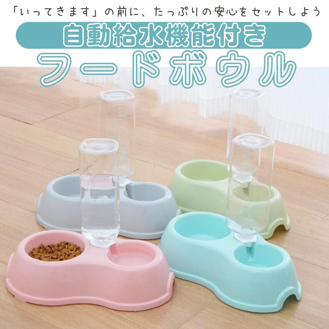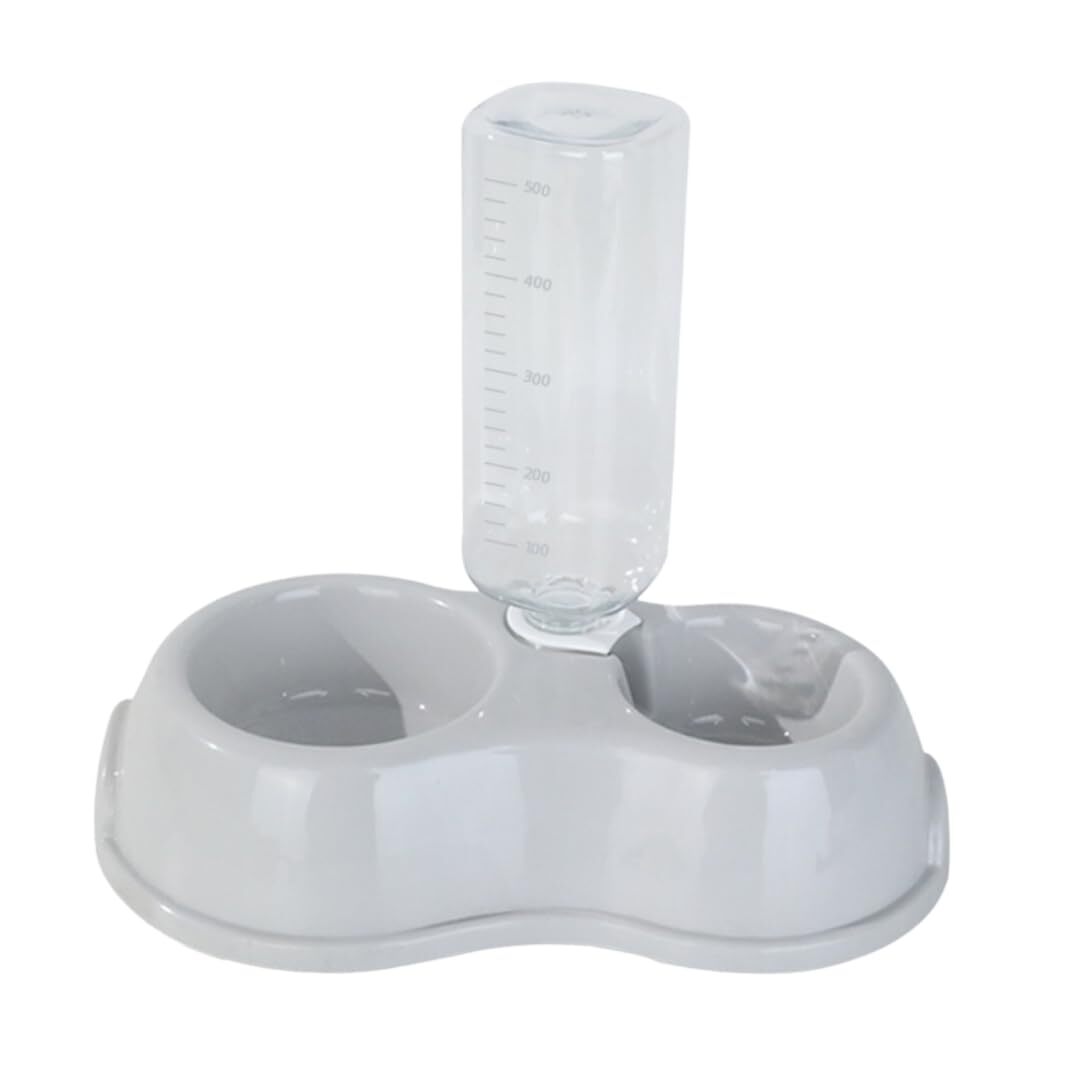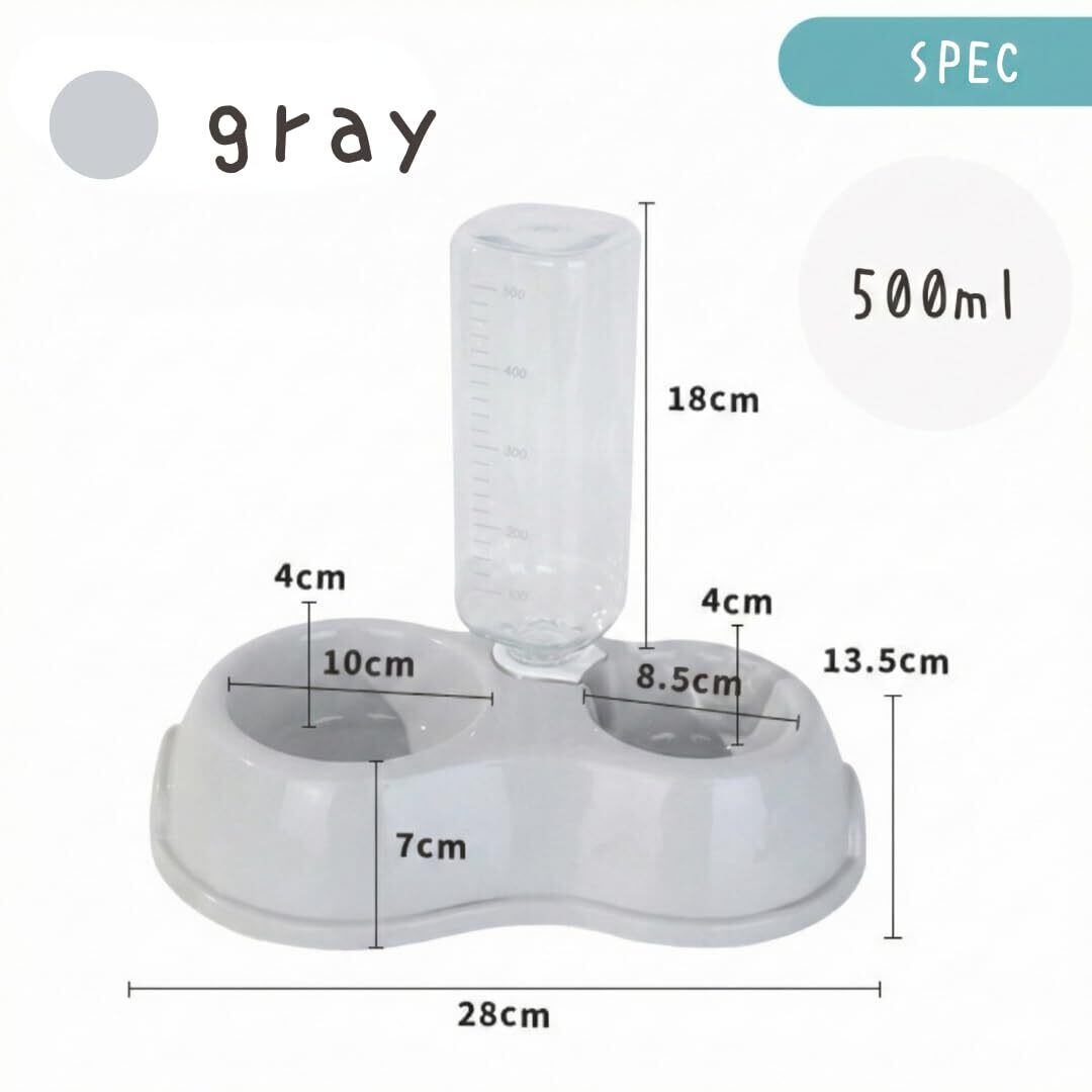 I'm so happy 給水器 ペットボトル 猫 犬 置き型 水飲み器 餌入れ フードボウル 水やり 自動 ペット用(グレー)
