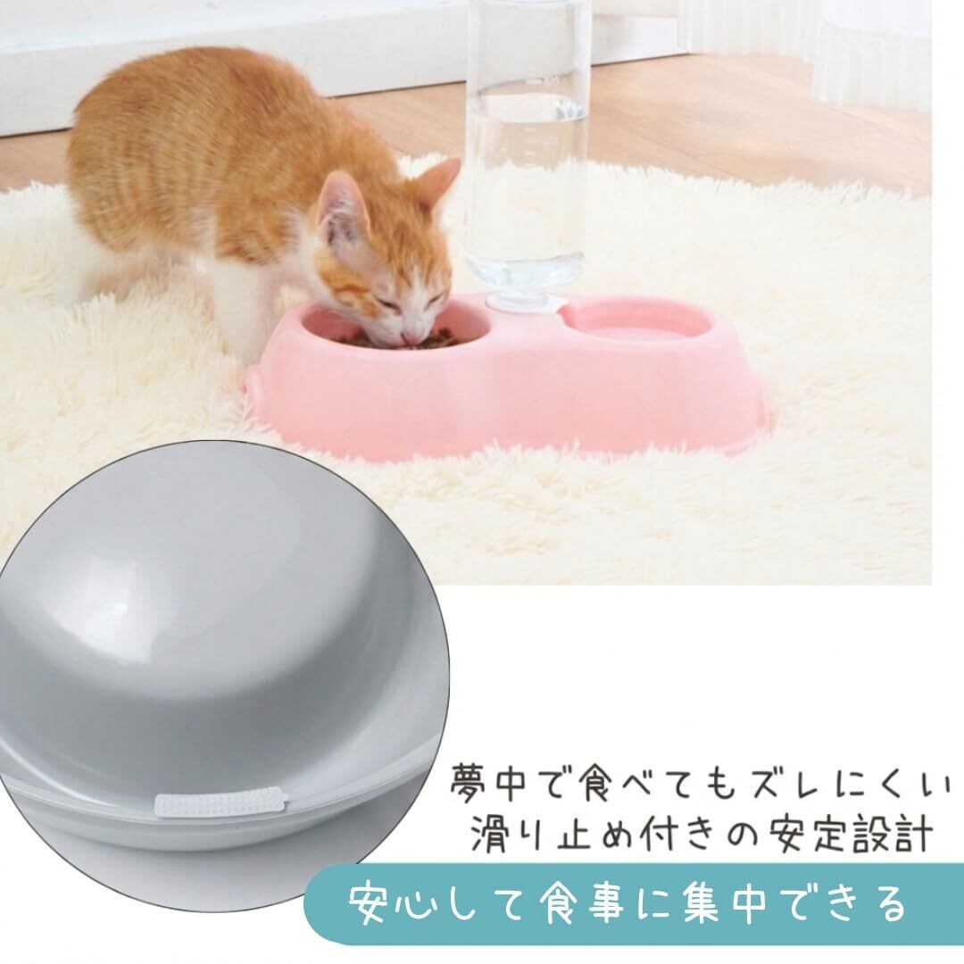I'm so happy 給水器 ペットボトル 猫 犬 置き型 水飲み器 餌入れ フードボウル 水やり 自動 ペット用(ピンク)
