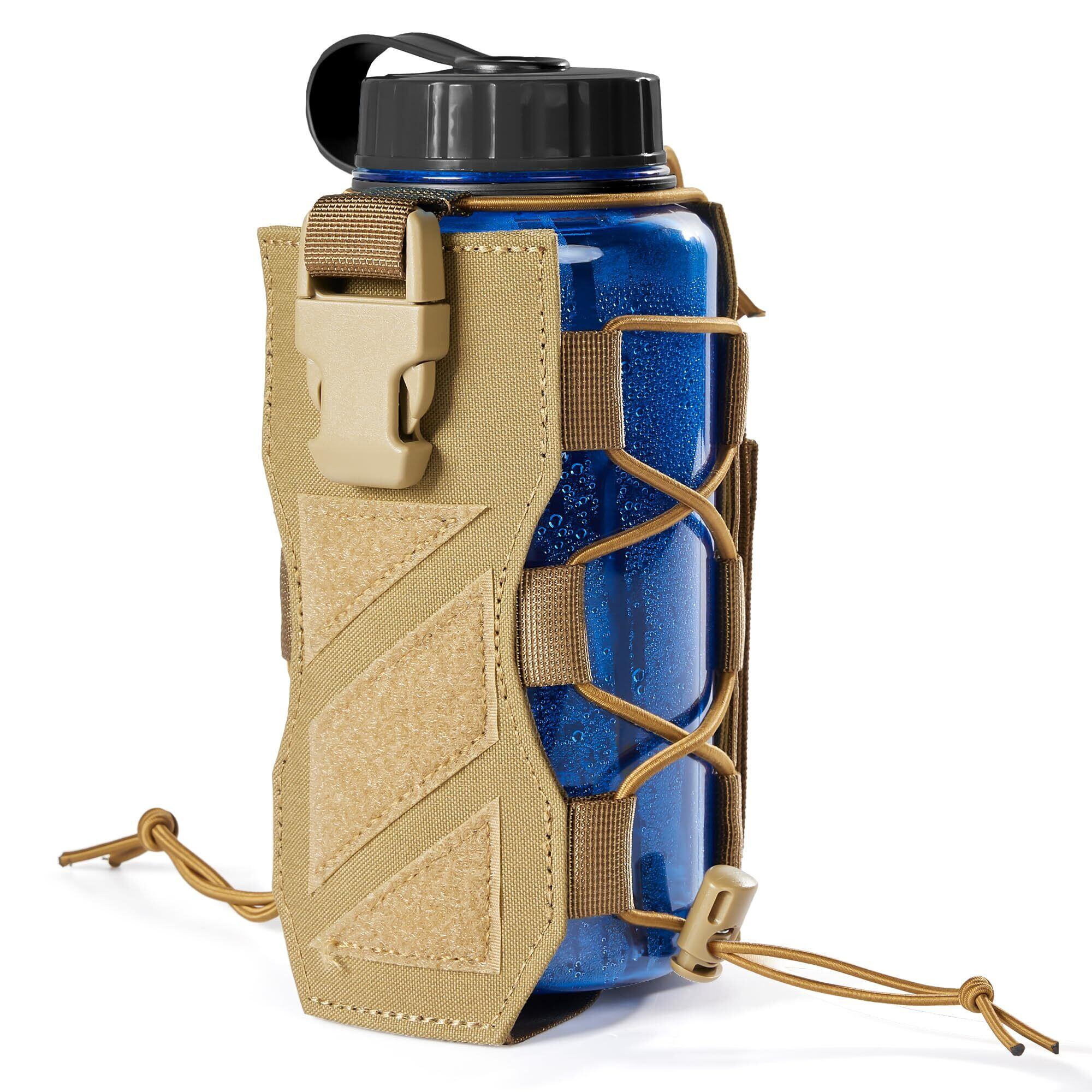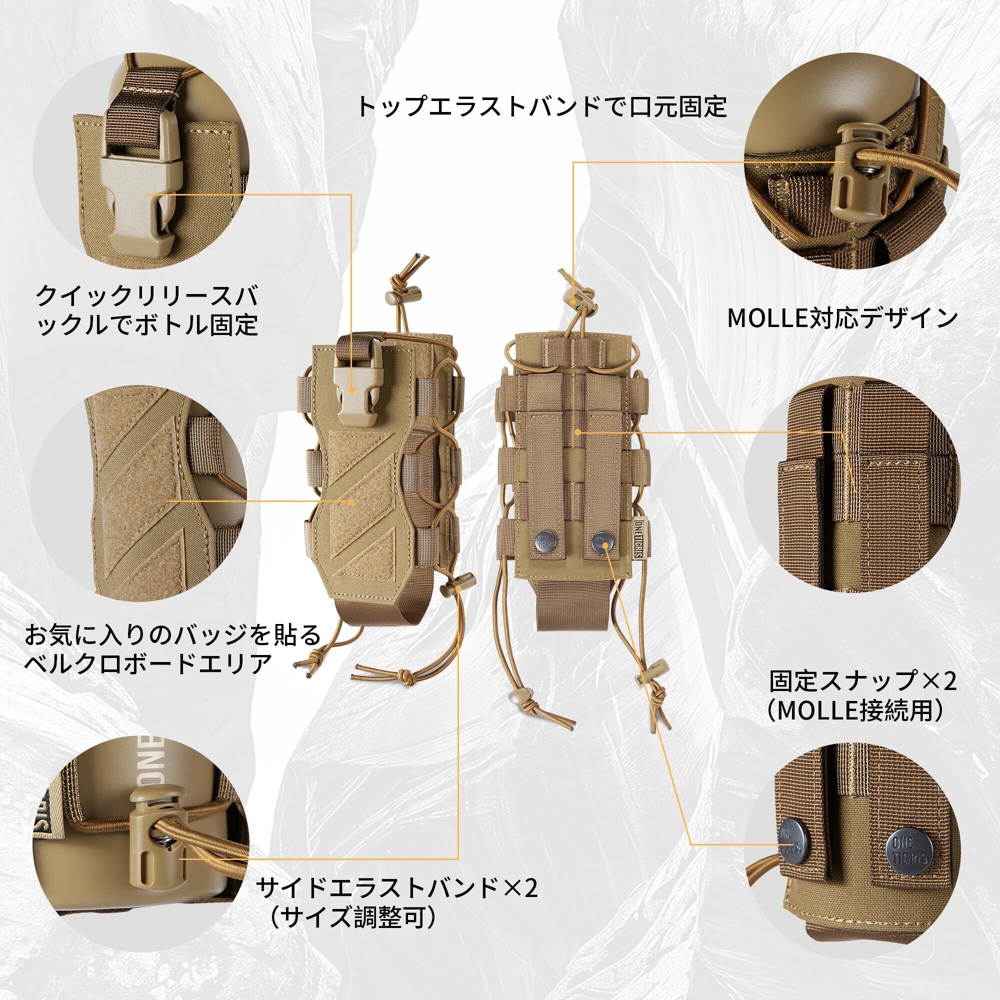 OneTigris水筒カバー 350ml~1.5Lボトル 水筒 飲料 缶対応 ボトルホルダー 伸縮自在 折り畳め モール付き 耐久ナイロン製 軽い ミリタリー ペットボトルカバー サバゲー・登山・釣り・アウトドア ・スポーツ ・バイク・自転車用 ブラック